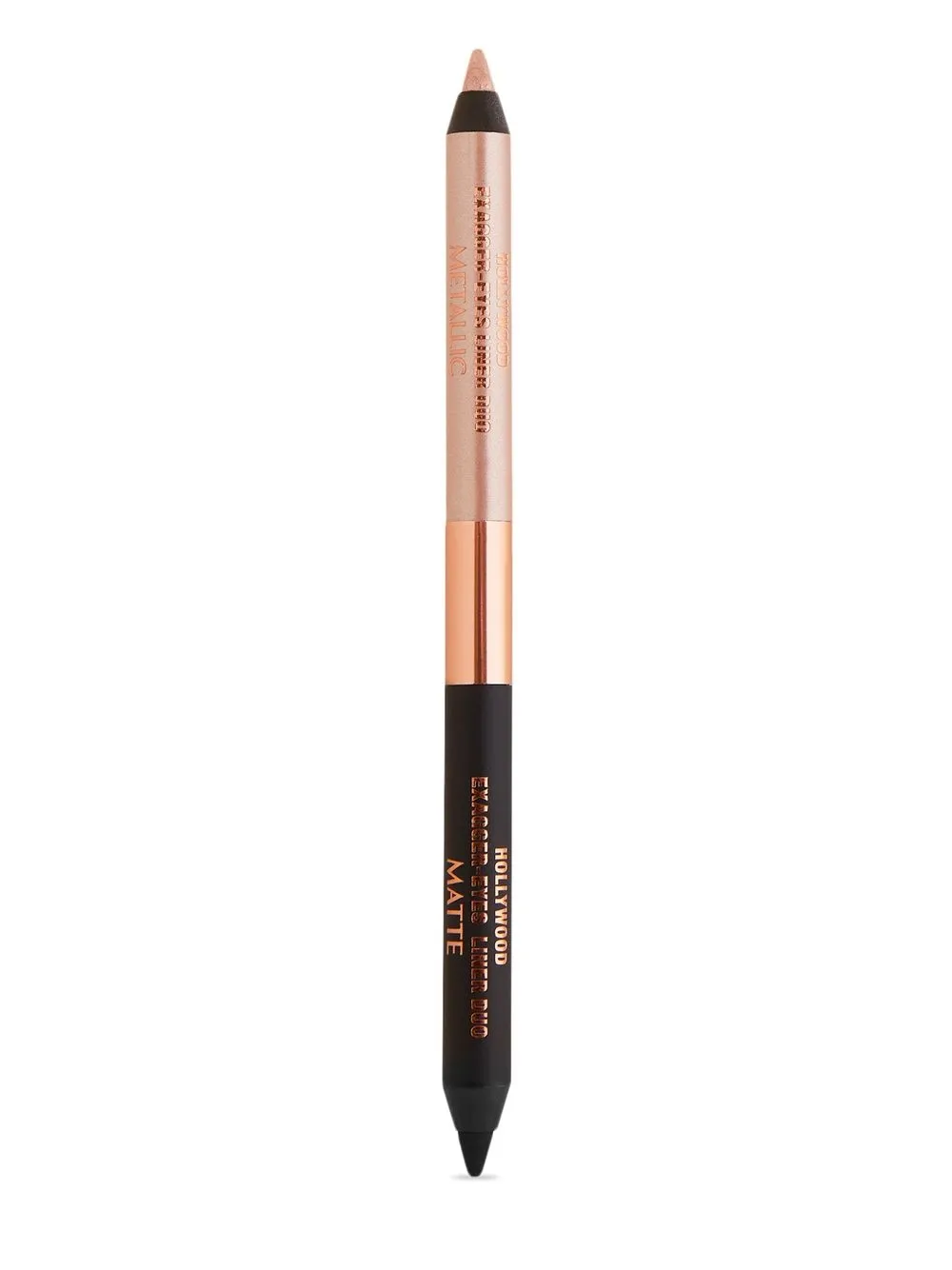 L’eyeliner duo Hollywood Exagger-Eyes di Charlotte Tilbury, a lunga durata e waterproof, crea uno sguardo più grande e luminoso grazie agli effetti contrastanti di luce e ombra. La formula contiene emollienti che danno vita a una texture liscia e simile a un gel.