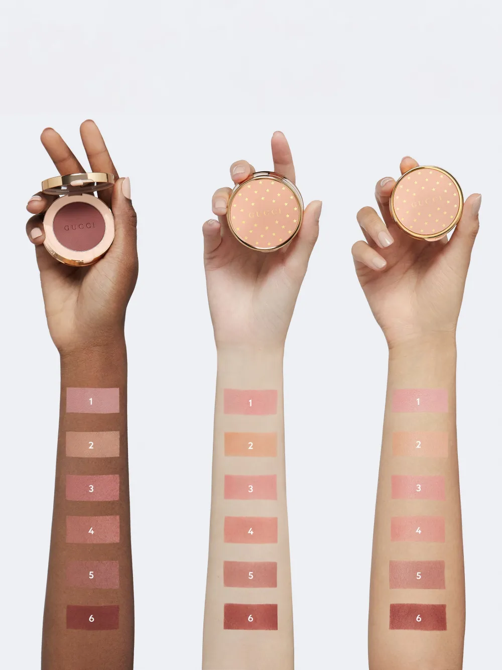 Il Blush De Beauté di Gucci Beauty è una polvere liscia che può essere applicata su guance e occhi. Arricchita da burro di karité idratante e acido ialuronico, la formula è adattabile e contiene pigmenti e cere emollienti che donano un colore modulabile e duraturo per un’intensità personalizzata.