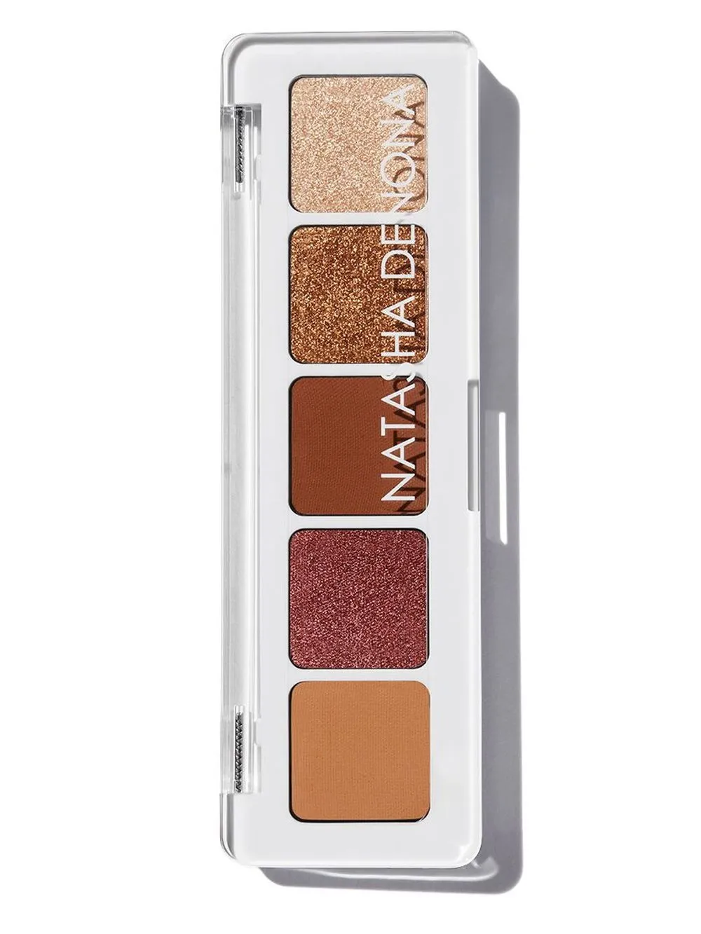 La palette di ombretti Mini Sunset è presentata da Natasha Denona come estensione della pluripremiata palette di ombretti Sunset, con finiture sia metallizzate che opache. Le cinque nuove tonalità, proposte in una piccola confezione, si caratterizzano per la textura cremosa opaca e in polvere, entrambe modulabili e sfumabili, per creare un look completamente personalizzabile.