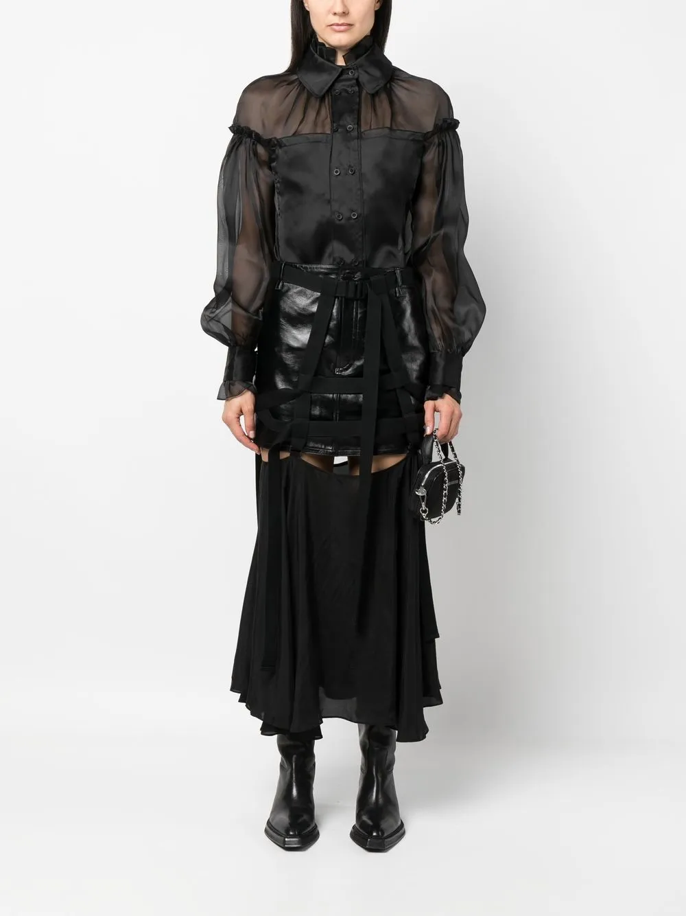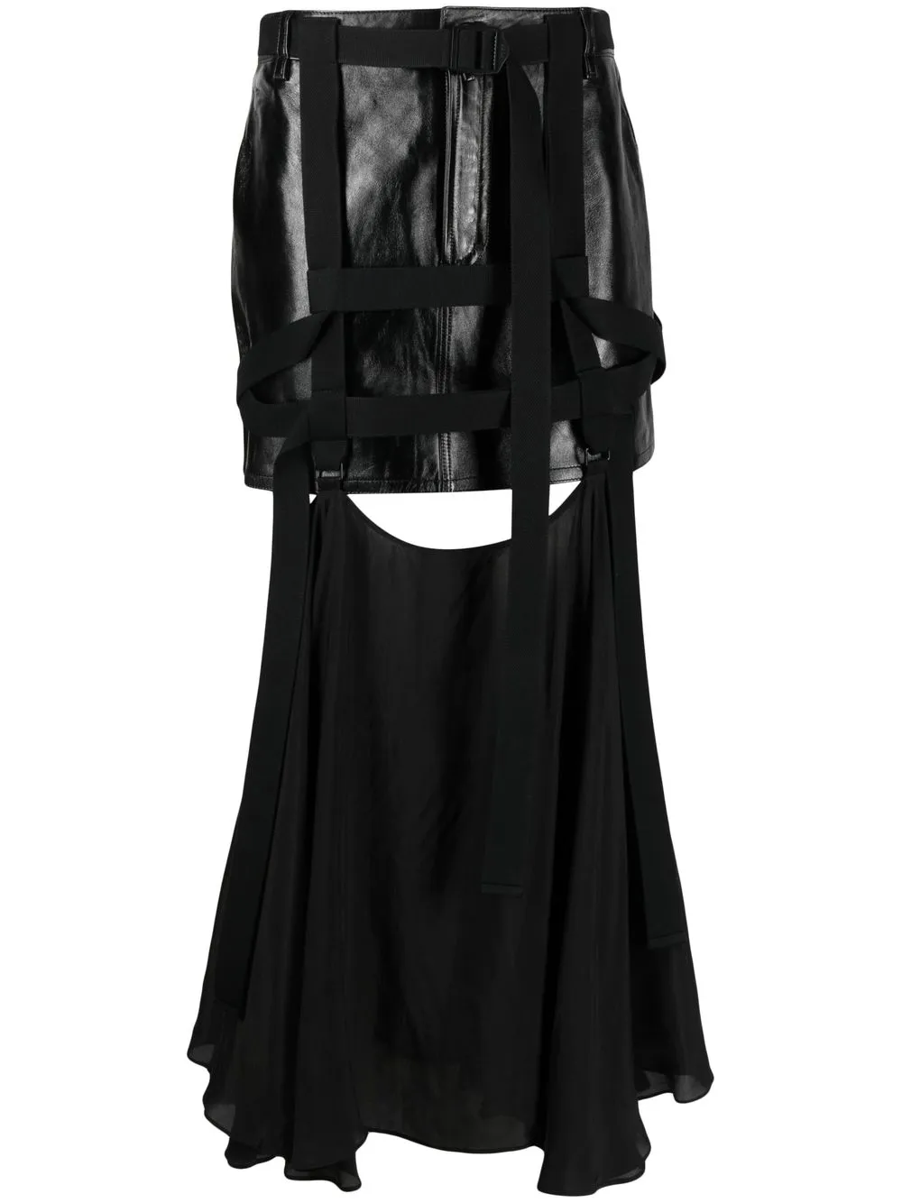 Chiusura con fibbia, passanti e chiusura frontale nascosta.