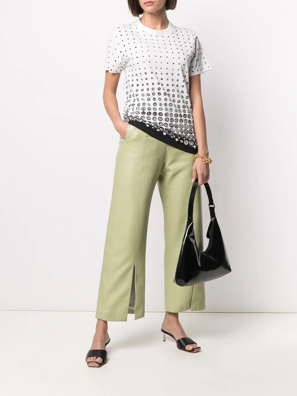 Lavorazione in jersey, stampa a pois, girocollo e maniche corte. Materiale: cotone. Colore: bianco.
