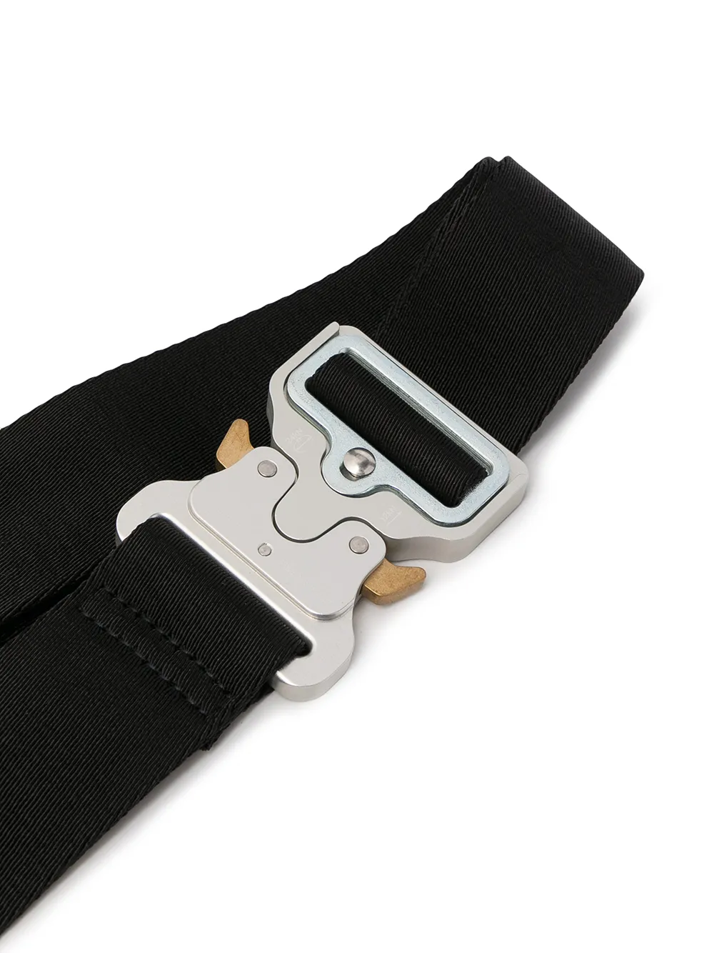 Dettagli color argento, design regolabile, fascia con logo goffrato, logo inciso e chiusura con fibbia. Colore: nero.