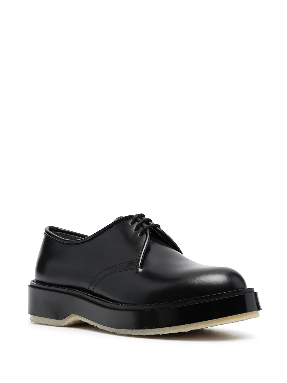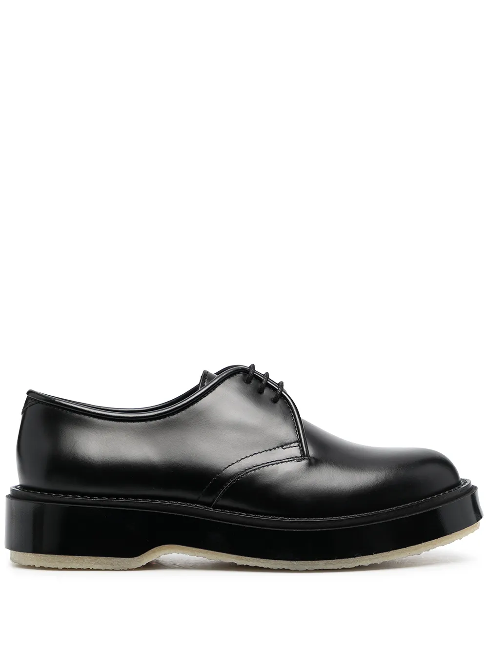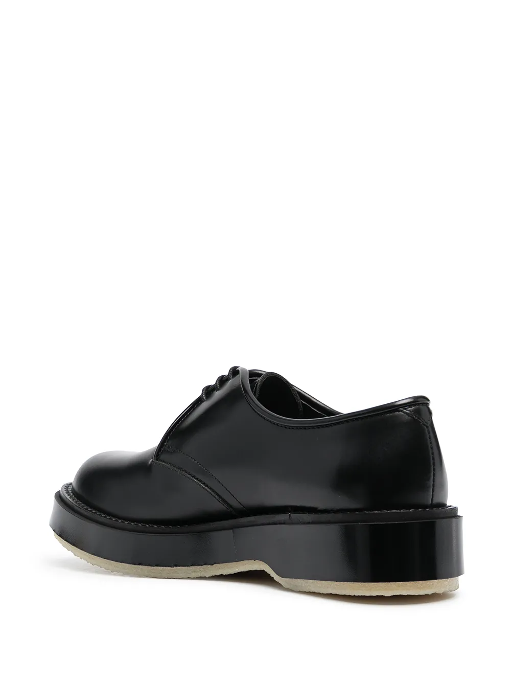Cuciture tono su tono, punta tonda, chiusura frontale con lacci, soletta con logo e suola piatta in gomma. Materiale: pelle. Colore: nero.
