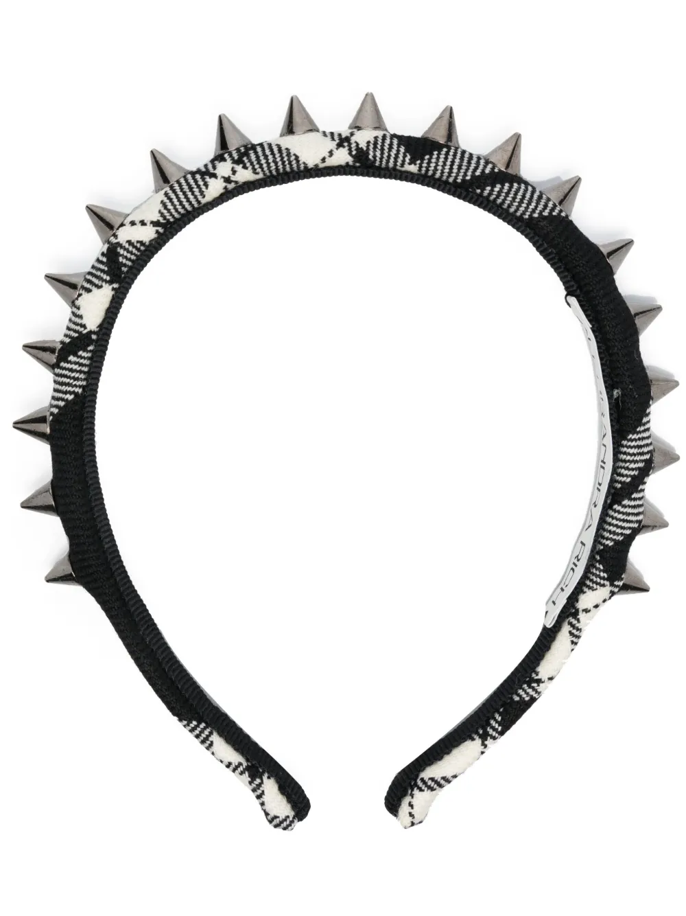 Nero/bianco, motivo a quadri tartan, dettaglio borchia a punta e design slip-on.