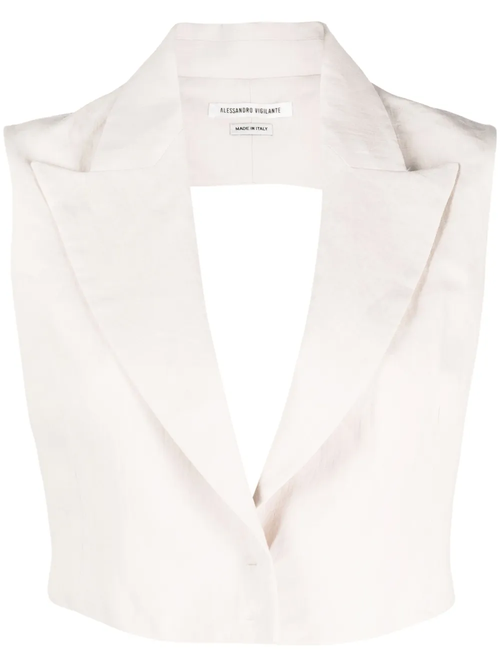 Beige chiaro, lino, revers a lancia larghi, chiusura frontale nascosta, senza maniche, apertura sul retro, design crop e orlo dritto. Questo articolo contiene almeno il 50% di materiali certificati o ampiamente riconosciuti per il loro basso impatto ambientale, grazie a processi di produzione e/o manifattura che riducono il consumo di acqua e l’uso di sostanze chimiche dannose, o prevedono il riutilizzo di sottoprodotti del processo di produzione. Per ulteriori informazioni sui requisiti che rendono un prodotto CONSCIOUS, consultare la pagina Criteri Conscious.