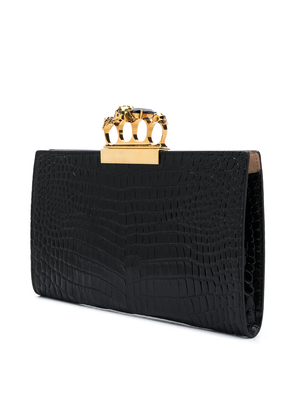 Clutch Four Ring nera in pelle di Alexander McQueen.