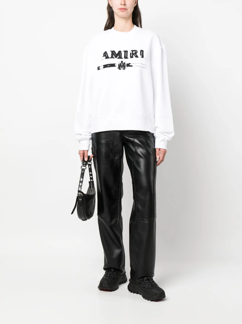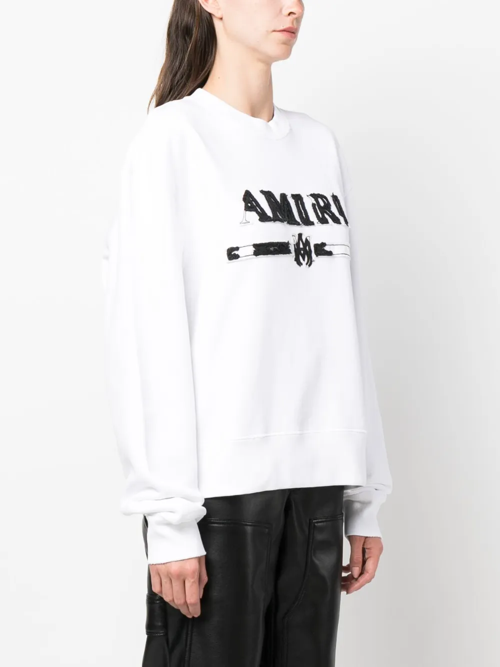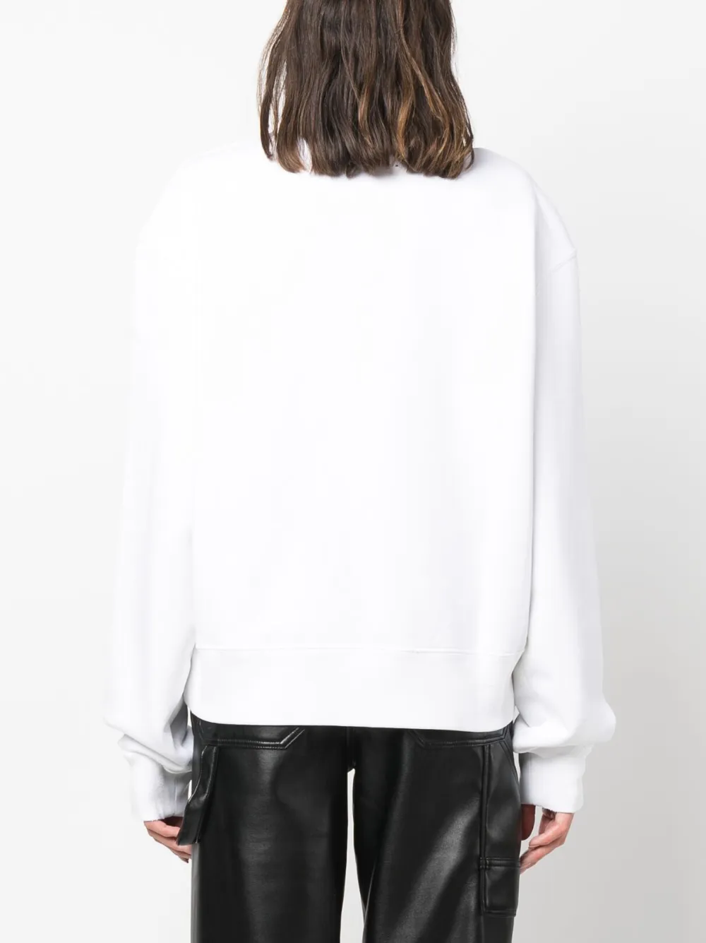 Bianco, cotone, felpa jersey, applicazione frontale con logo, girocollo, maniche lunghe e orlo dritto.