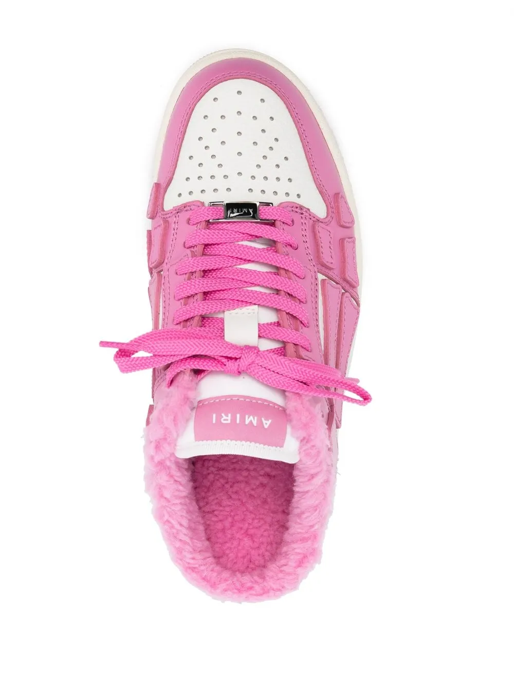 Pelle di vitello, pelle scamosciata di vitello, design a inserti, rifinitura in finto shearling, chiusura frontale con lacci, applicazione con logo sulla linguetta, dettaglio traforato, punta tonda e suola piatta in gomma.