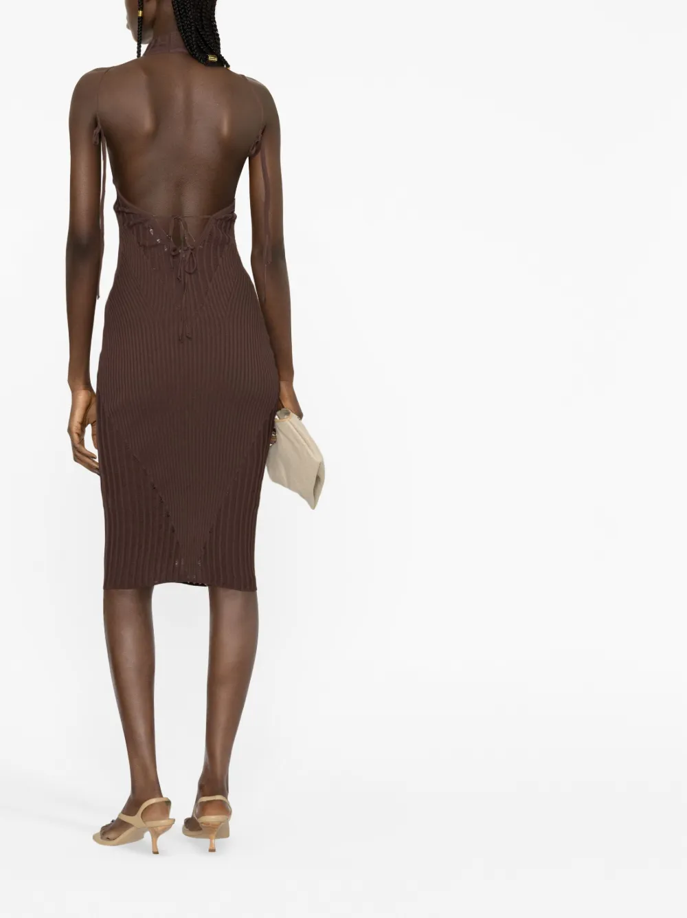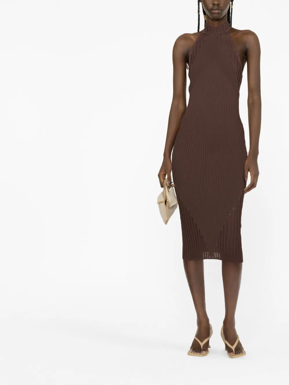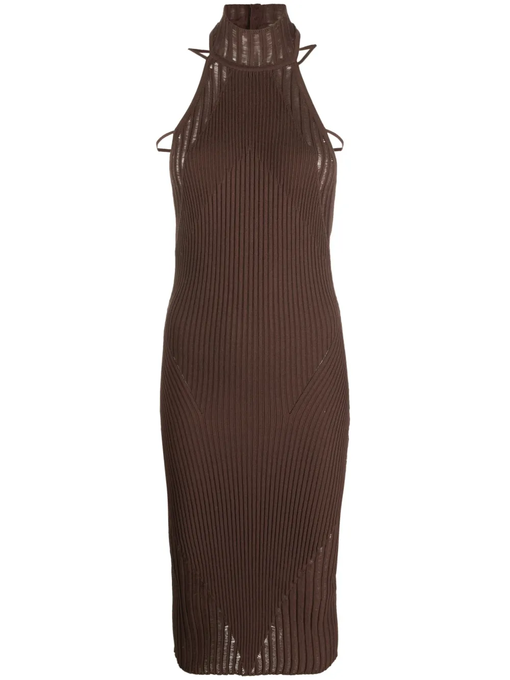 Marrone, design lavorato a maglia, scollo sul retro e senza maniche.