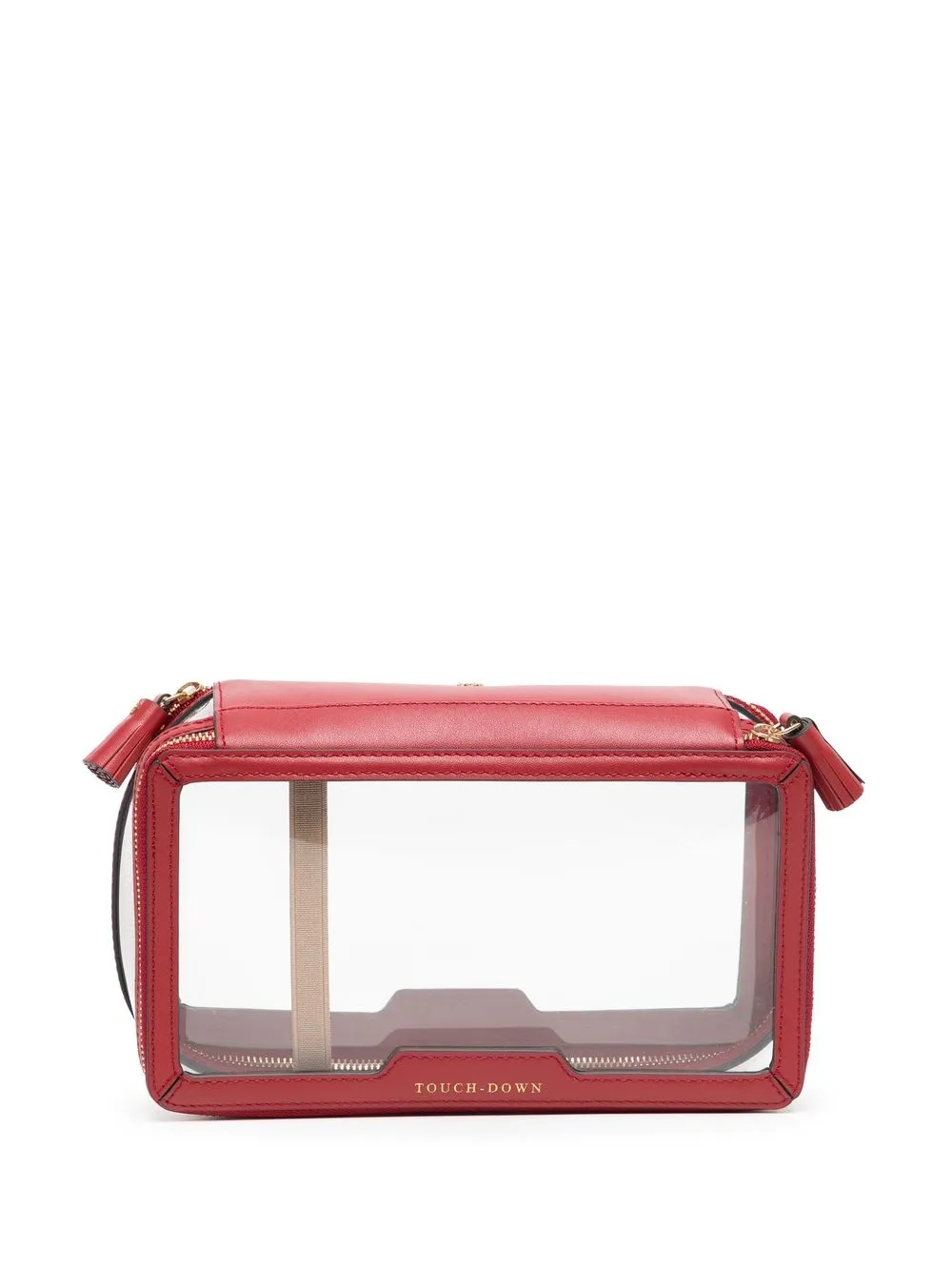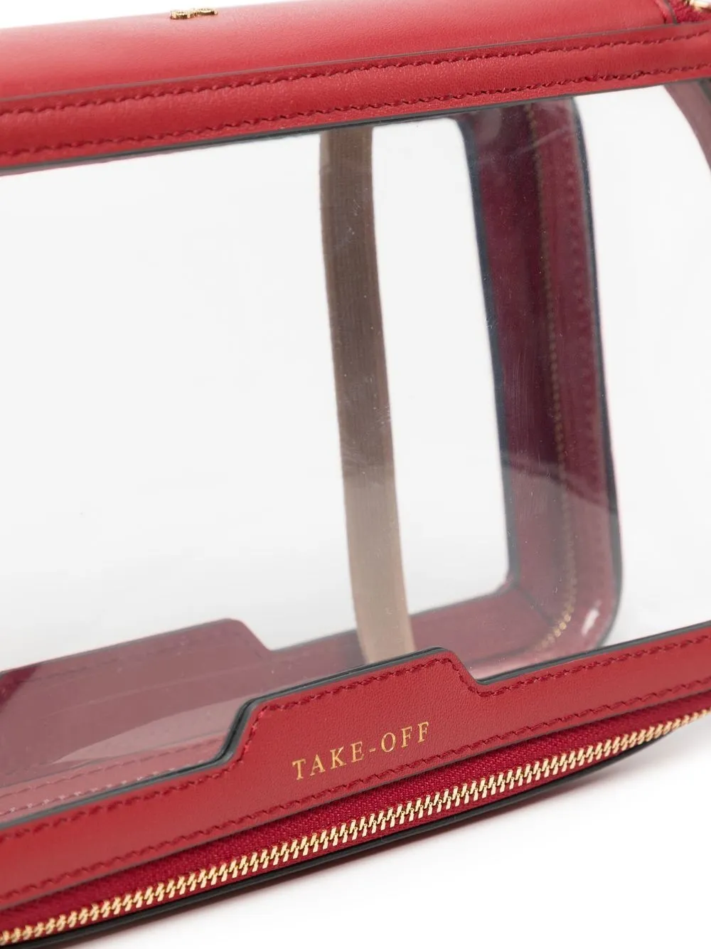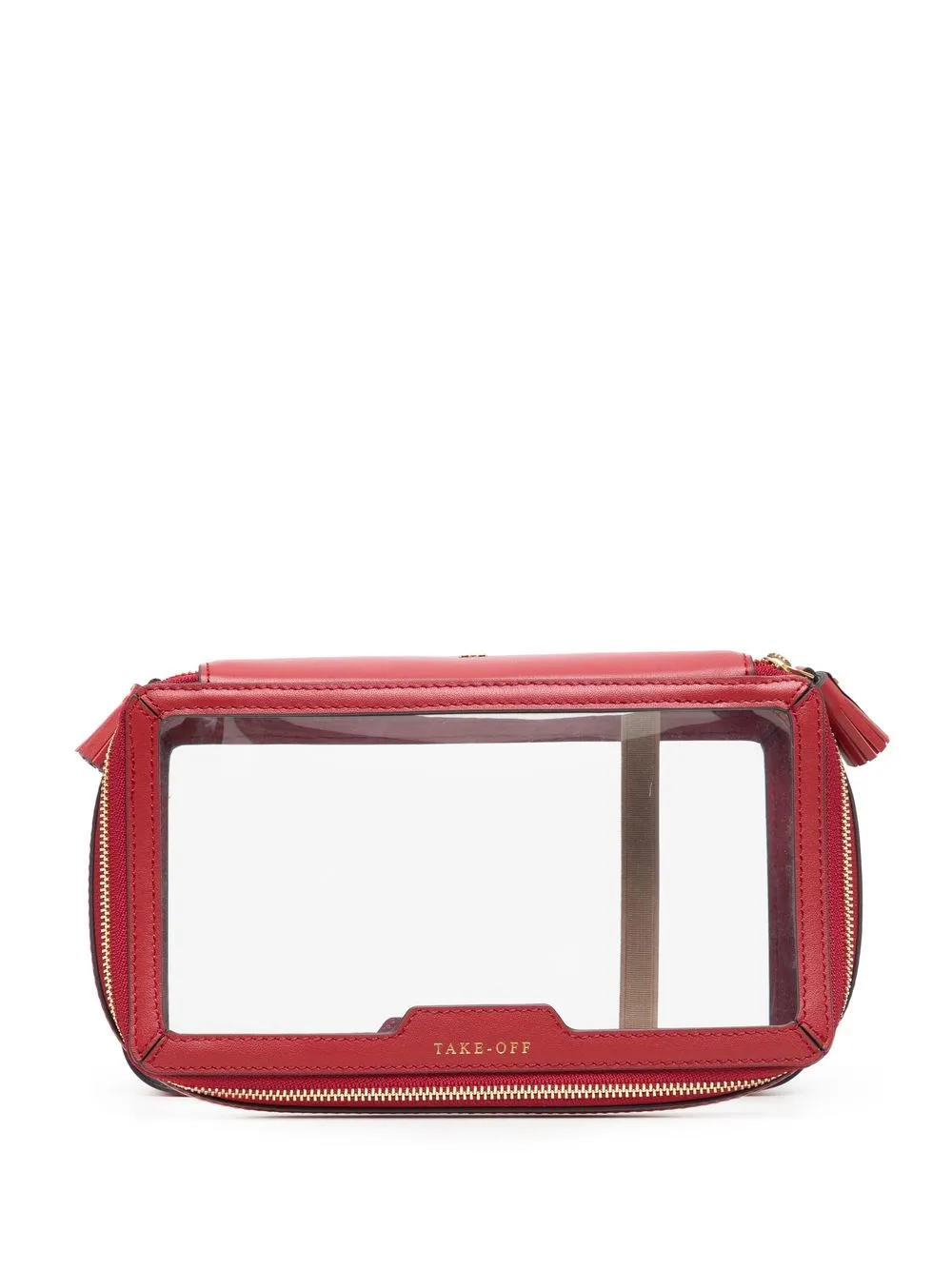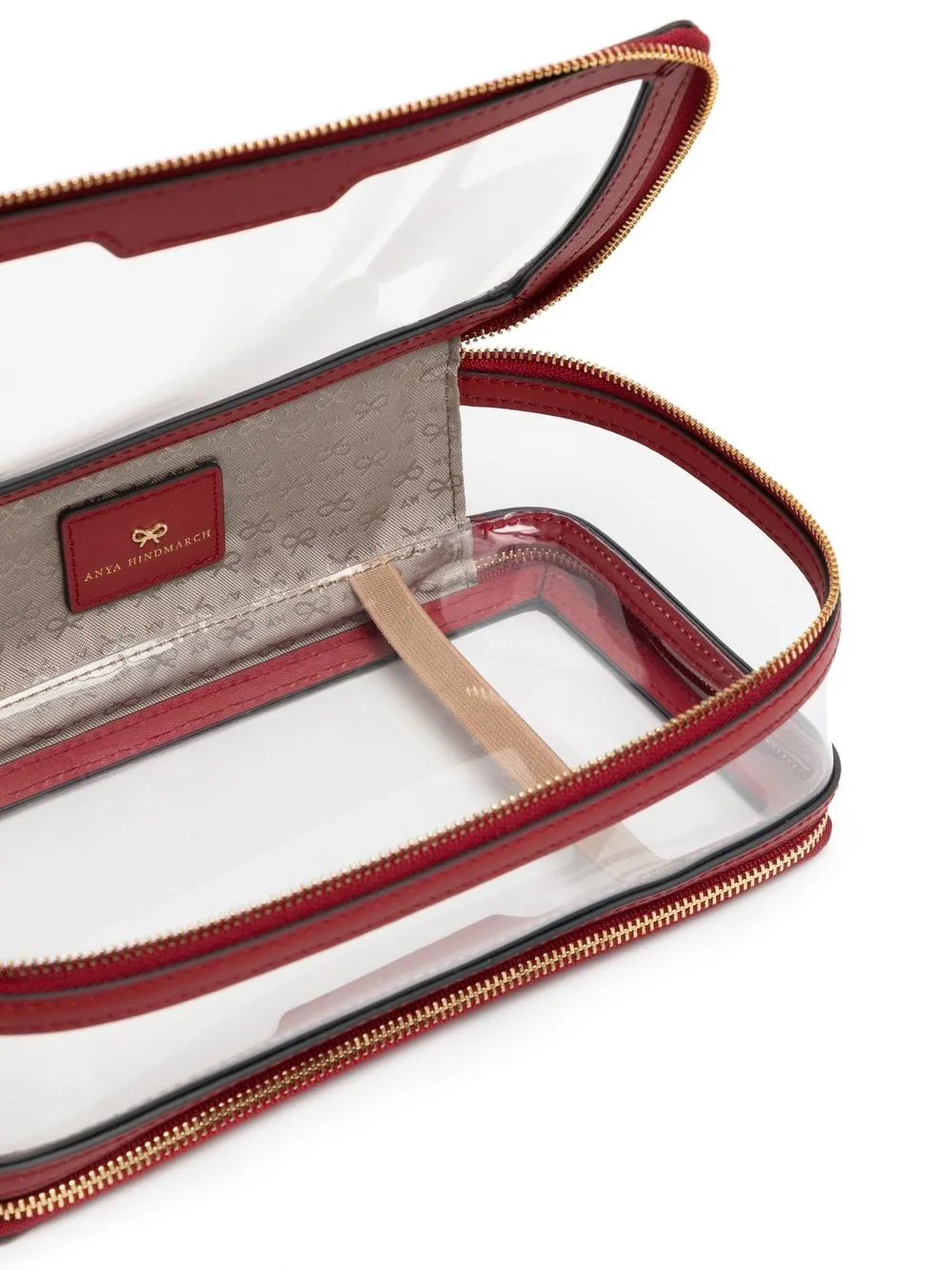 Rosso, dettagli color oro, applicazione interna con logo e chiusura con zip a giro.