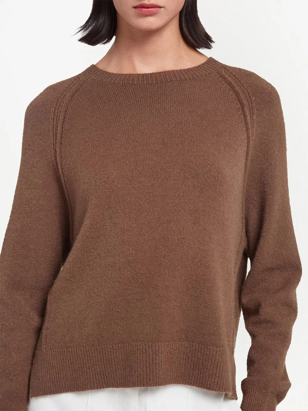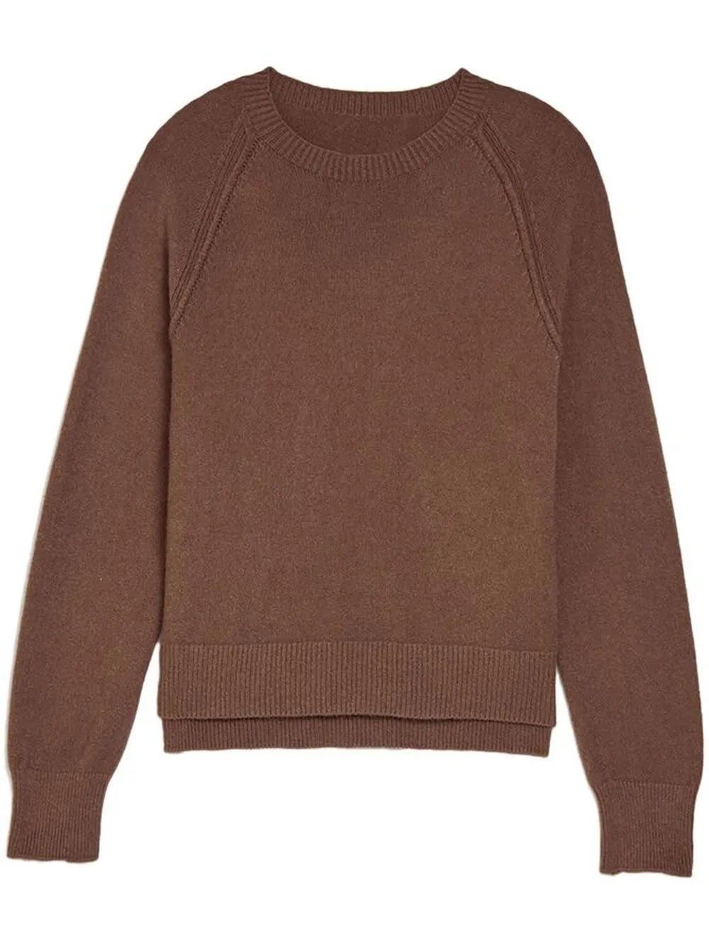 Marrone, design lavorato a maglia, girocollo, maniche lunghe e orlo dritto.