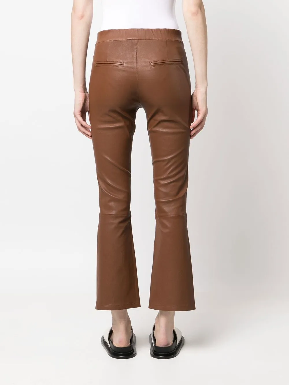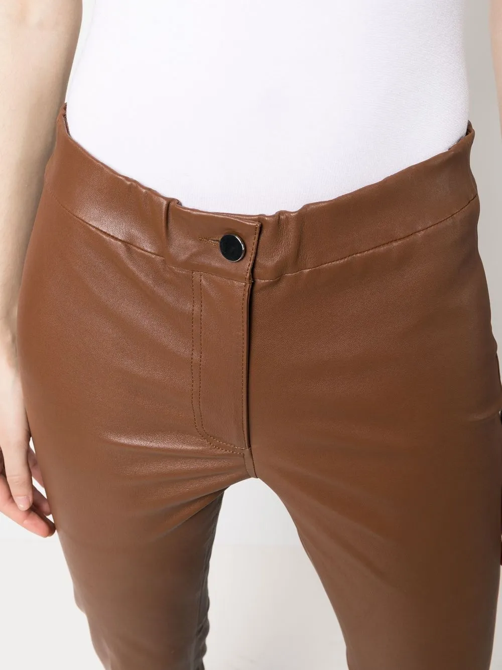Chiusura frontale con bottoni e zip, due tasche posteriori nascoste, taglio slim, taglio svasato e taglio crop.