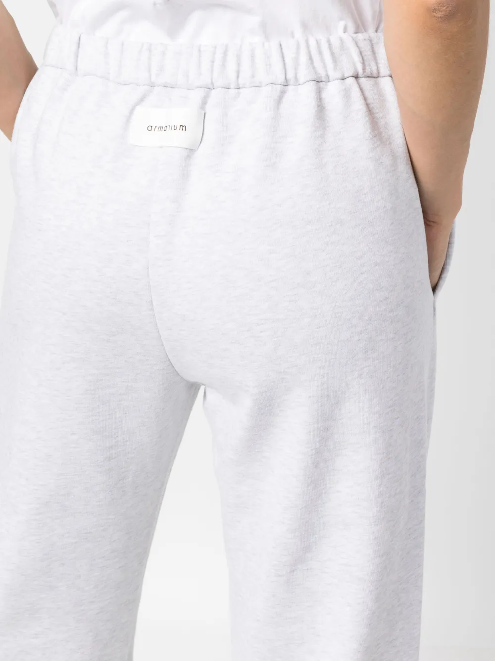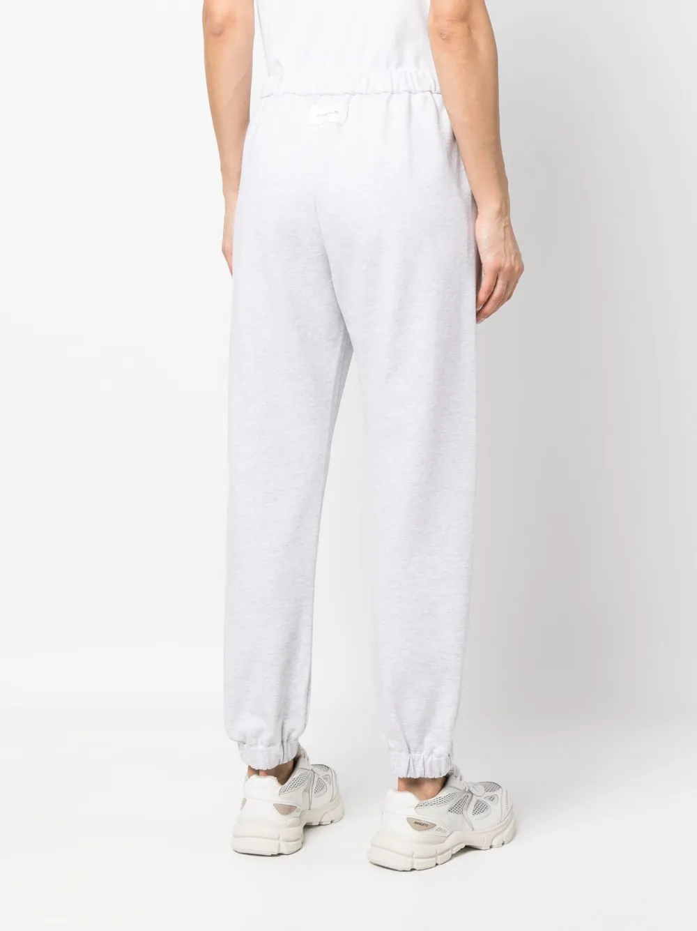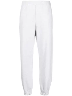 Grigio chiaro, cotone, applicazione posteriore con logo, gamba affusolata, vita elasticizzata e due tasche laterali a filetto.