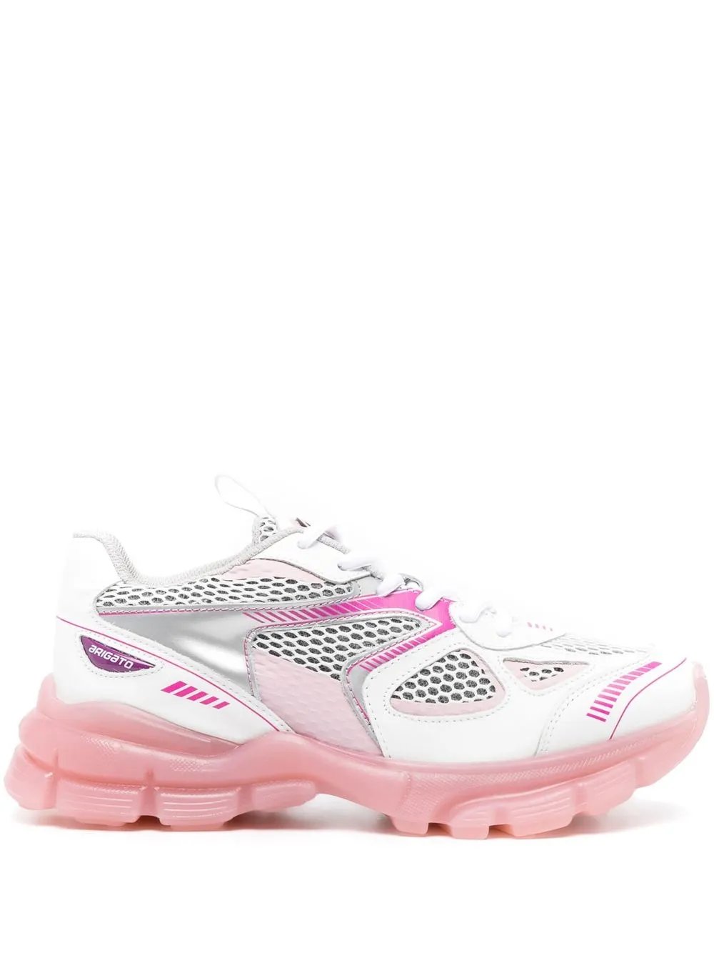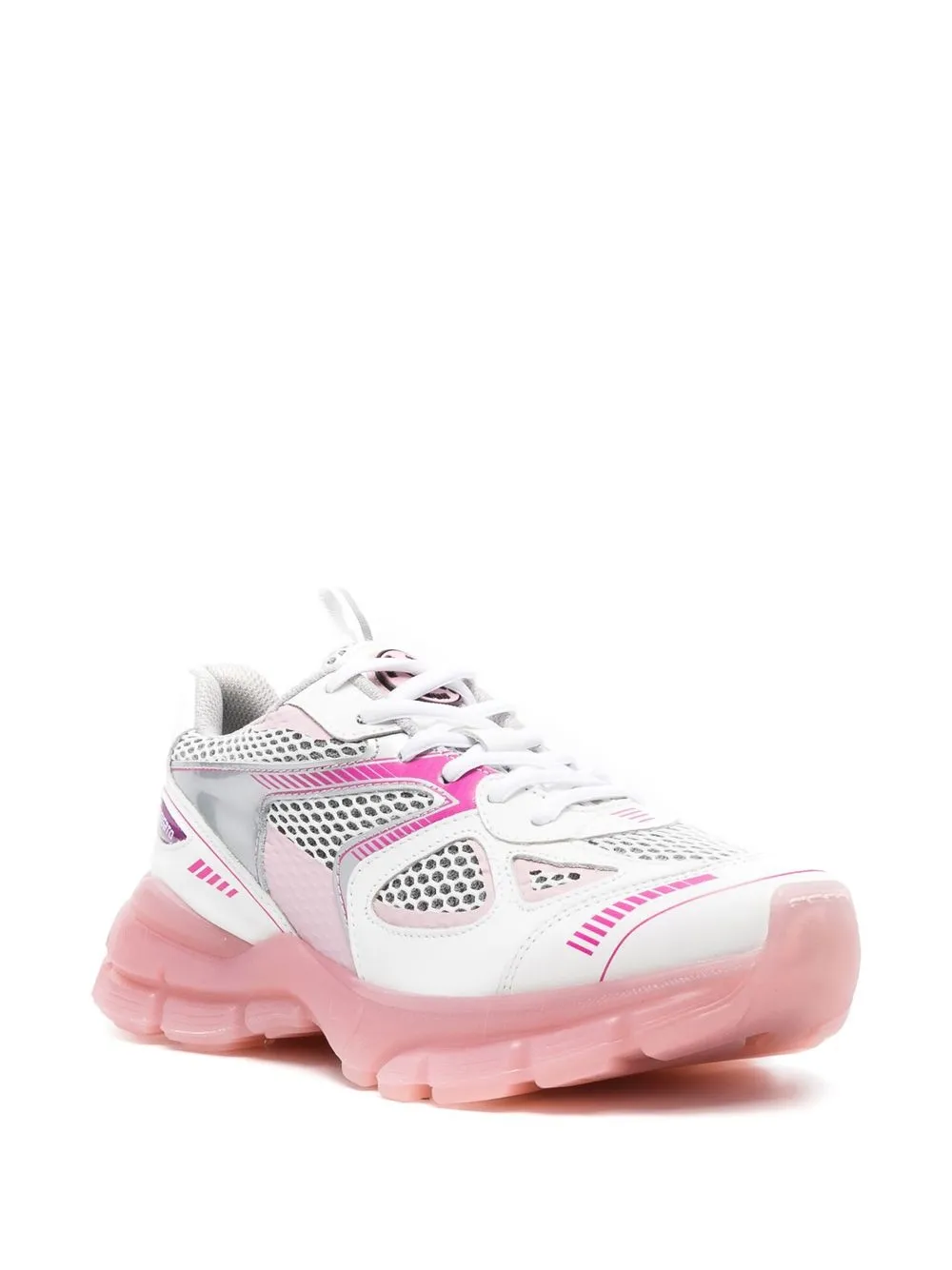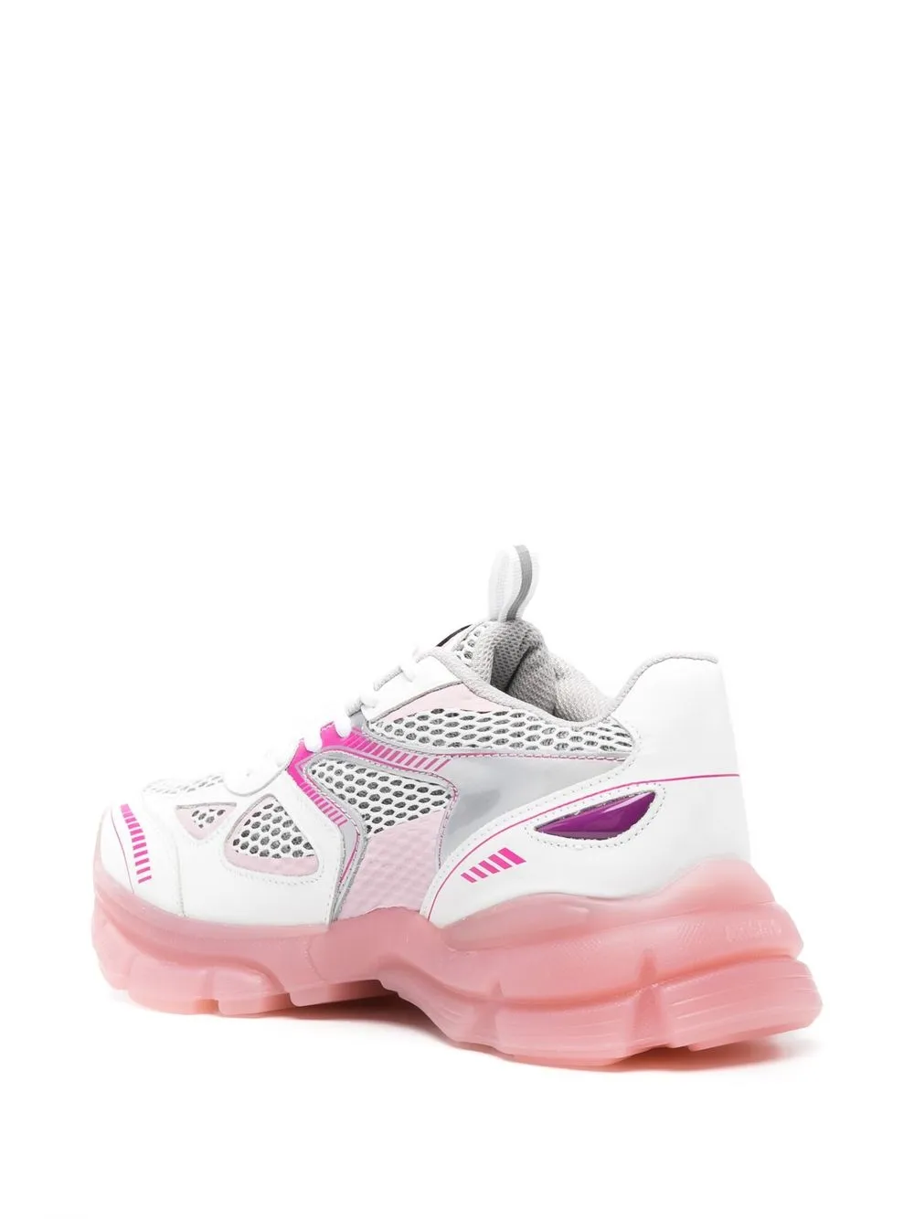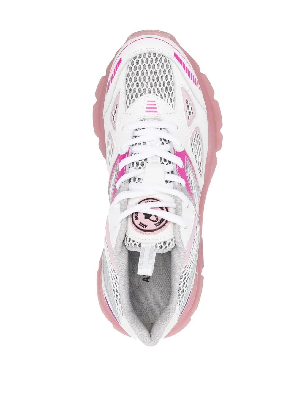 Bianco, rosa chiaro, pelle, design a pannelli, punta tonda, chiusura frontale con lacci, soletta con logo e suola in gomma.