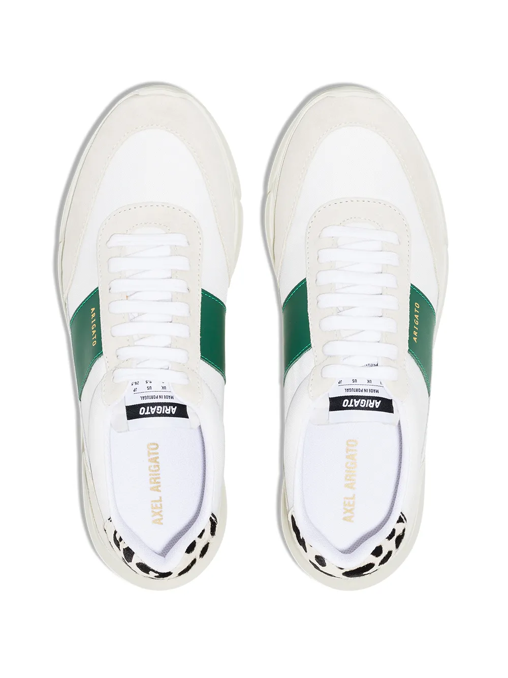 Punta tonda, design a pannelli, chiusura frontale con lacci, applicazione con logo sulla linguetta, soletta con logo, rinforzo nel tallone a contrasto, logo in lettere color oro e suola in gomma antiscivolo. Materiale: pelle.