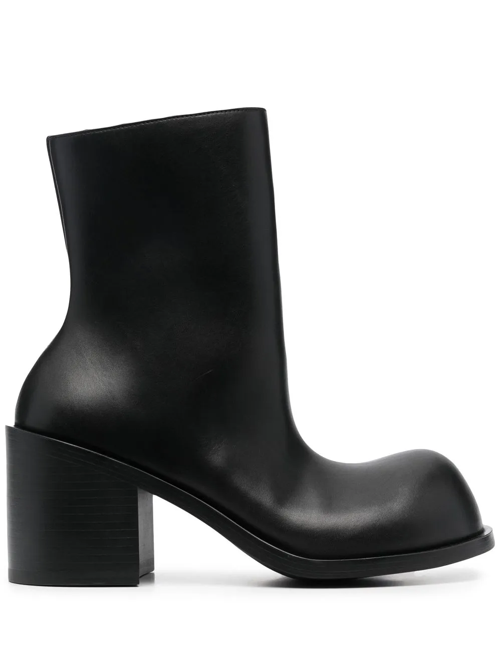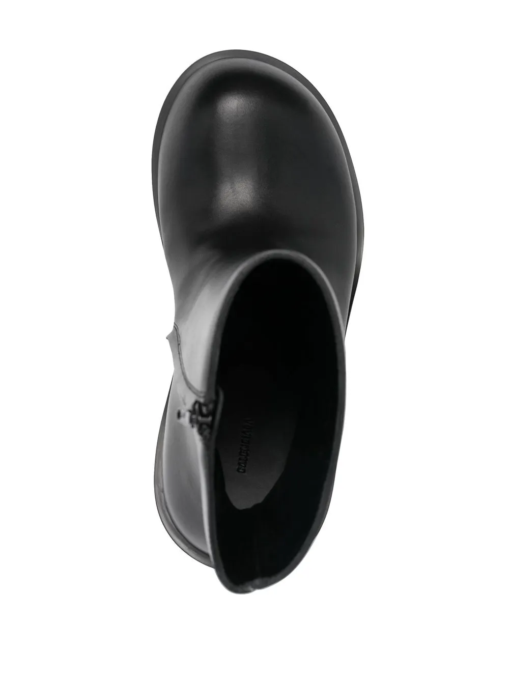 Nero, pelle di vitello, chiusura laterale con zip, altezza alla caviglia, punta tonda, suola esterna in gomma e tacco largo alto. CONSCIOUS: collaboriamo con Good On You, un’agenzia etica che valuta quanto un brand sia sostenibile; questo articolo proviene da un brand che ha una buona performance dal punto di vista dell’impatto sul pianeta.