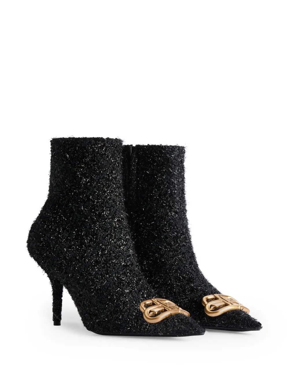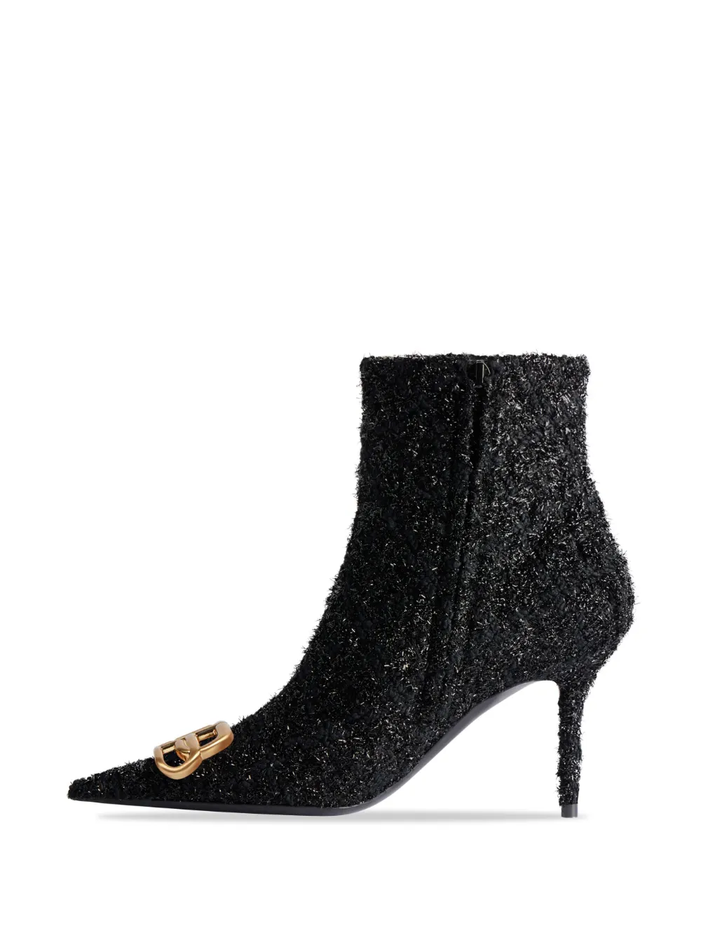 Nero, tweed, trama metallizzata, placca con logo color oro, design a punta, chiusura laterale con zip nascosta, tacco a stiletto, soletta con logo e altezza alla caviglia. Abbiamo collaborato con Good On You, un’agenzia indipendente che valuta le performance dei brand in relazione al loro impatto sul pianeta, sulle persone e sugli animali, con una valutazione basata su criteri multipli semplificata in una scala a cinque punti. Per ottenere il titolo Conscious, i brand più grandi devono aggiudicarsi un punteggio minimo di quattro su cinque (“Buono”), mentre quelli più piccoli un minimo di tre su cinque (“È un inizio”).
