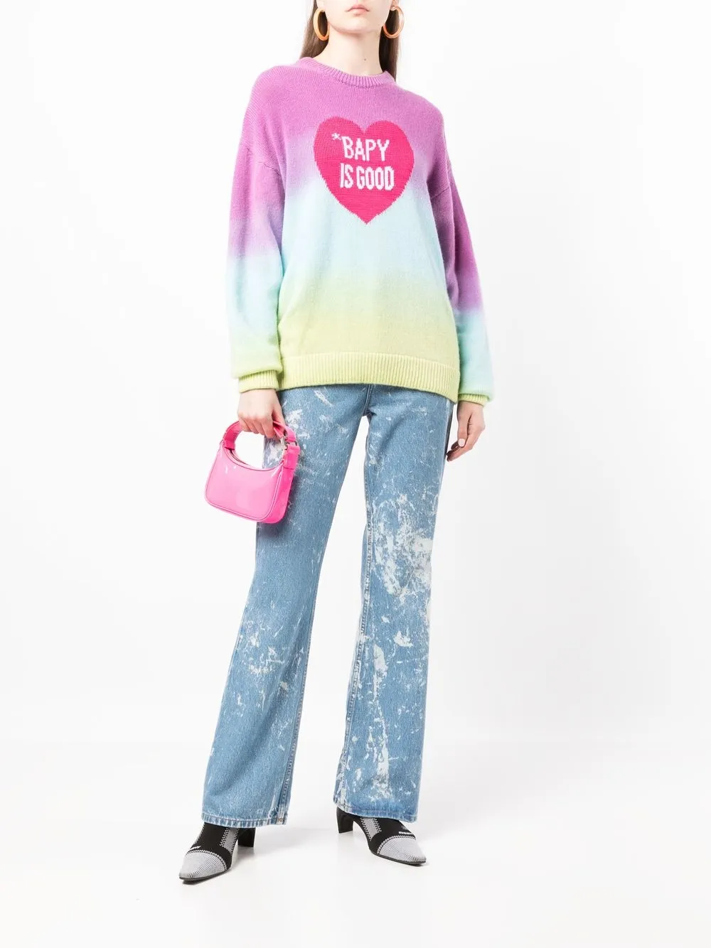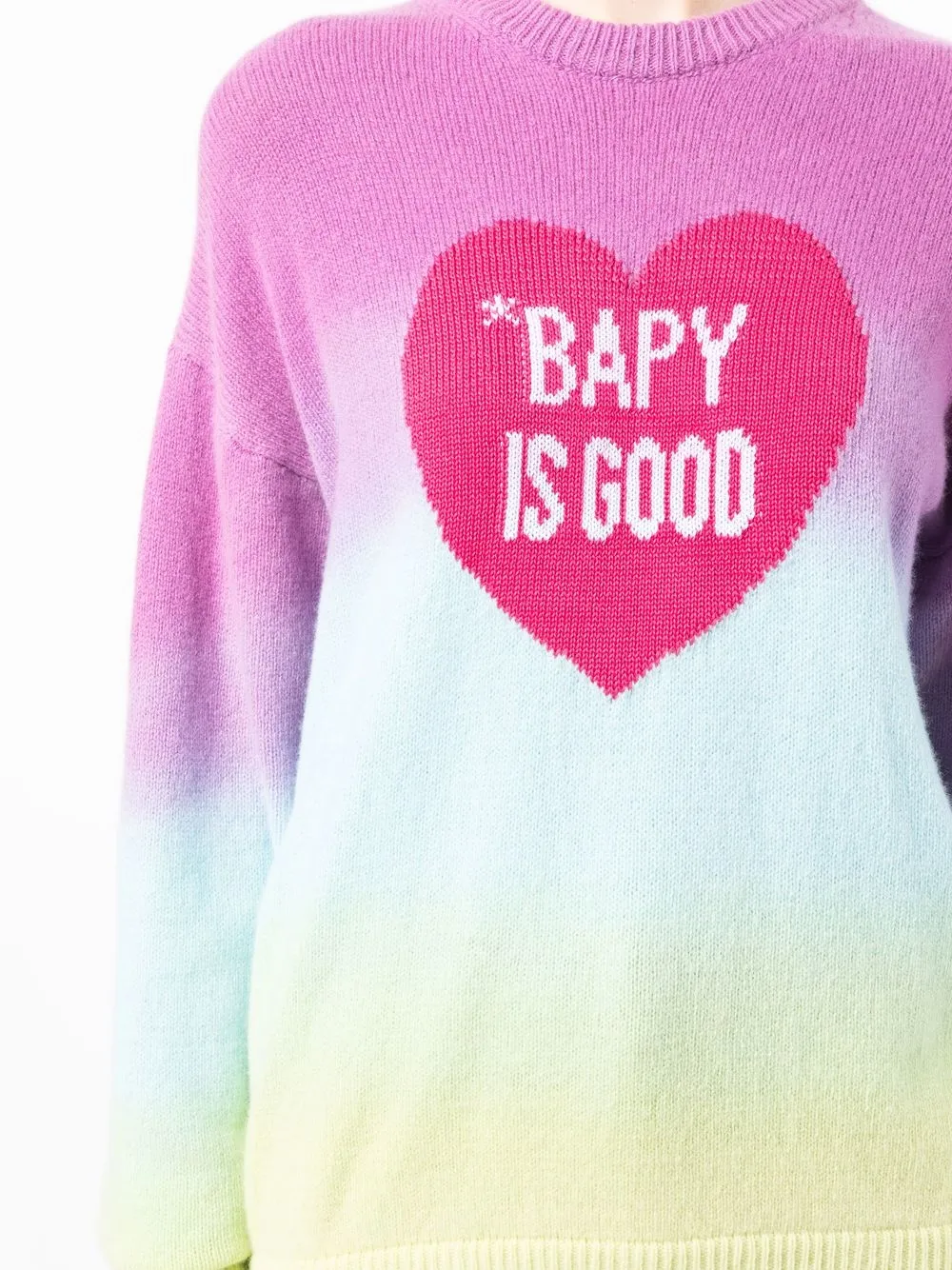 Multicolore, effetto ombré, stampa a cuori, stampa con testo, scollo rotondo, maniche lunghe e orlo dritto.
