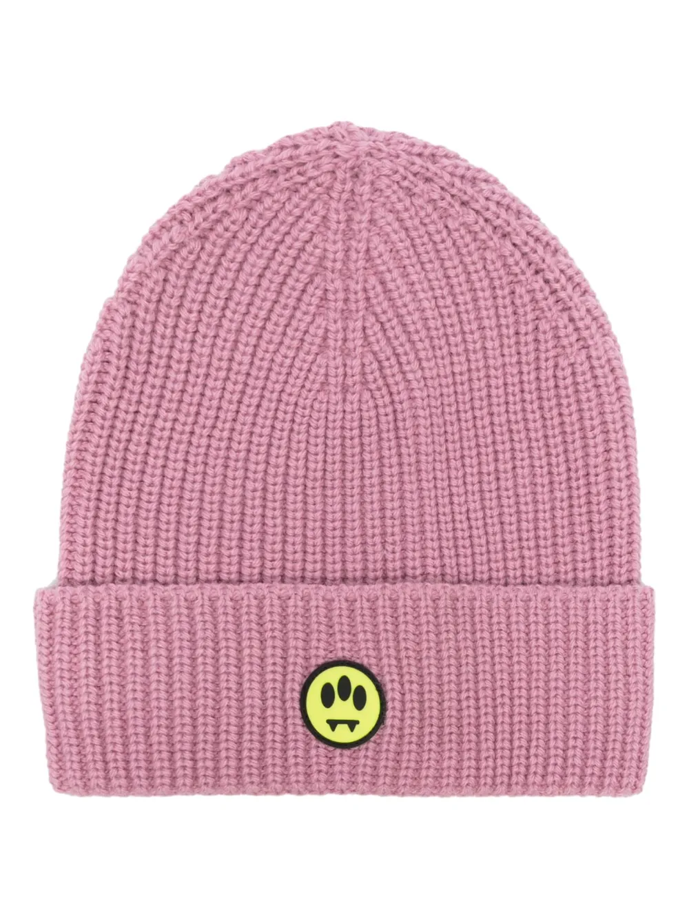 Rosa blush, maglia a coste chunky, corona ovale, applicazione frontale con logo, tesa con piega e design pull on.
