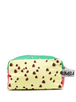 Nero, motivo a cuori, stampa con logo sul davanti, applicazione interna con logo, chiusura superiore con zip e scomparto unico.