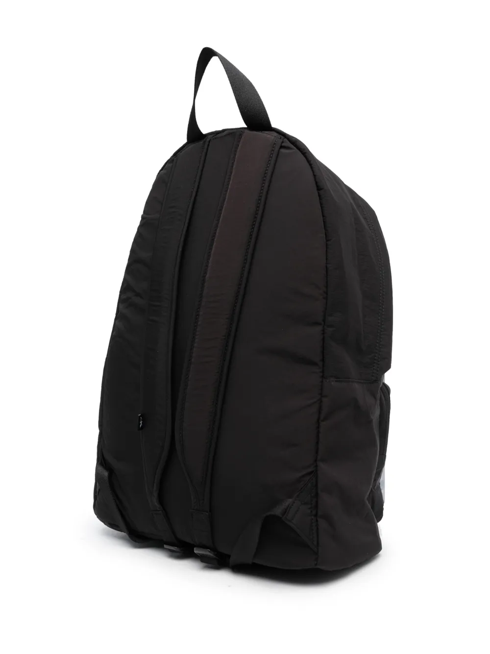 Nero, applicazione frontale con logo, tasca a marsupio frontale con zip, chiusura con zip a doppio cursore, manico piatto, spalline regolabili e scomparto unico.