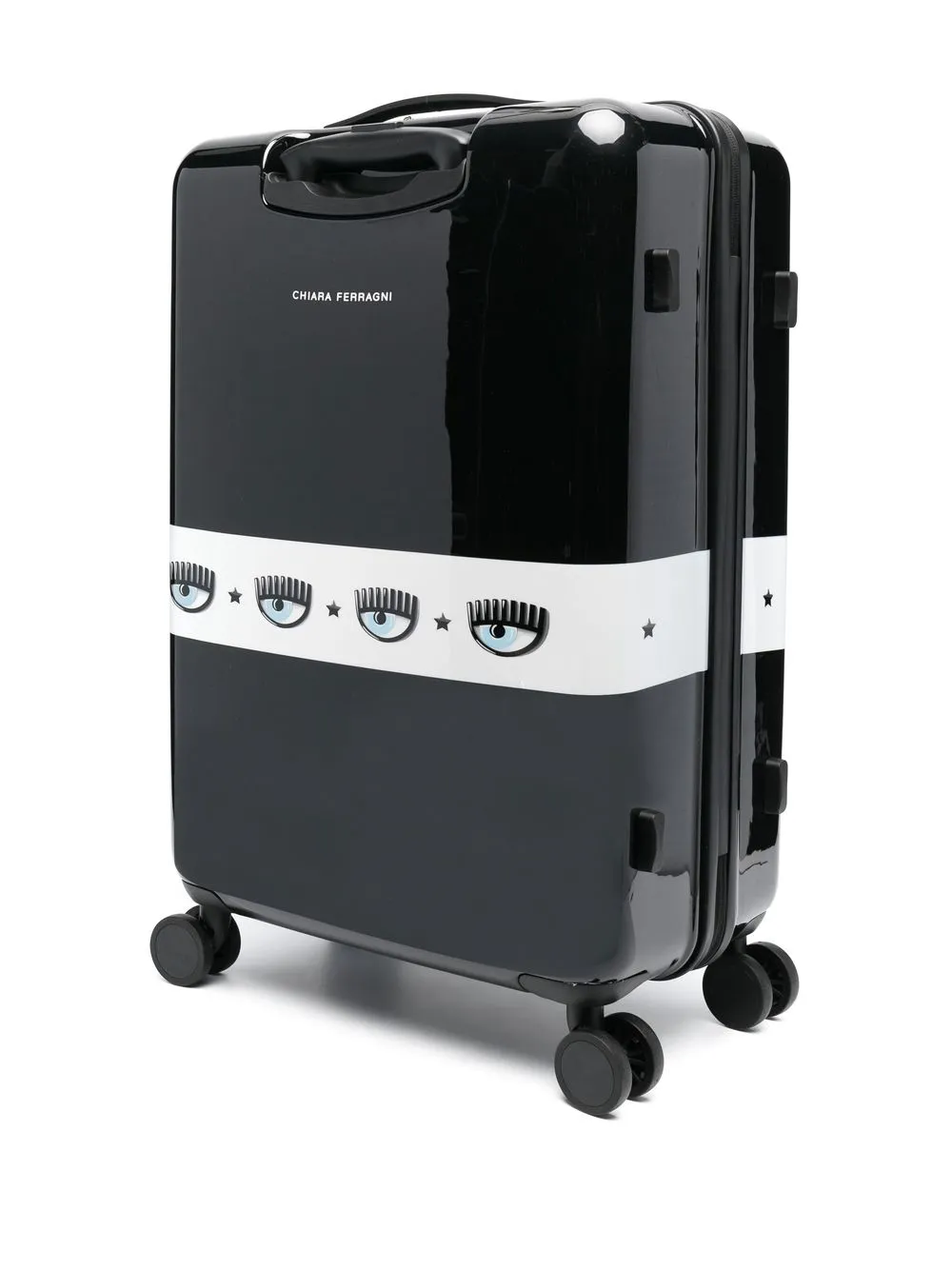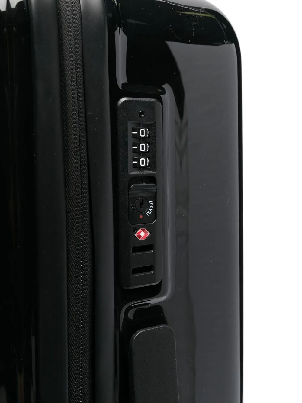 Nero, stampa con logo sul davanti, chiusura con zip a giro, tasca interna con zip, manico superiore regolabile, manico piatto laterale e quattro ruote.