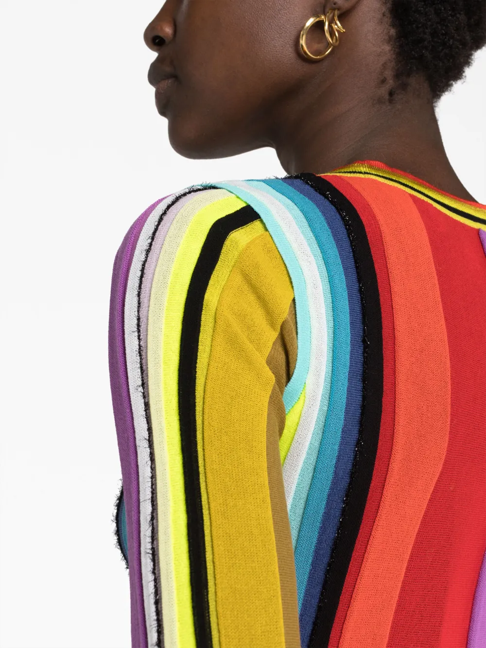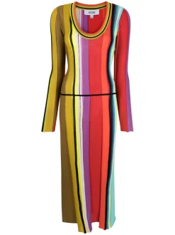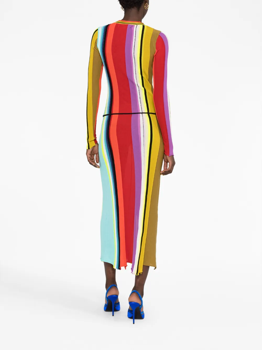 Multicolore, misto cotone, design lavorato a maglia, motivo a righe verticali, scollo ampio, maniche lunghe, lunghezza al polpaccio e orlo dritto.