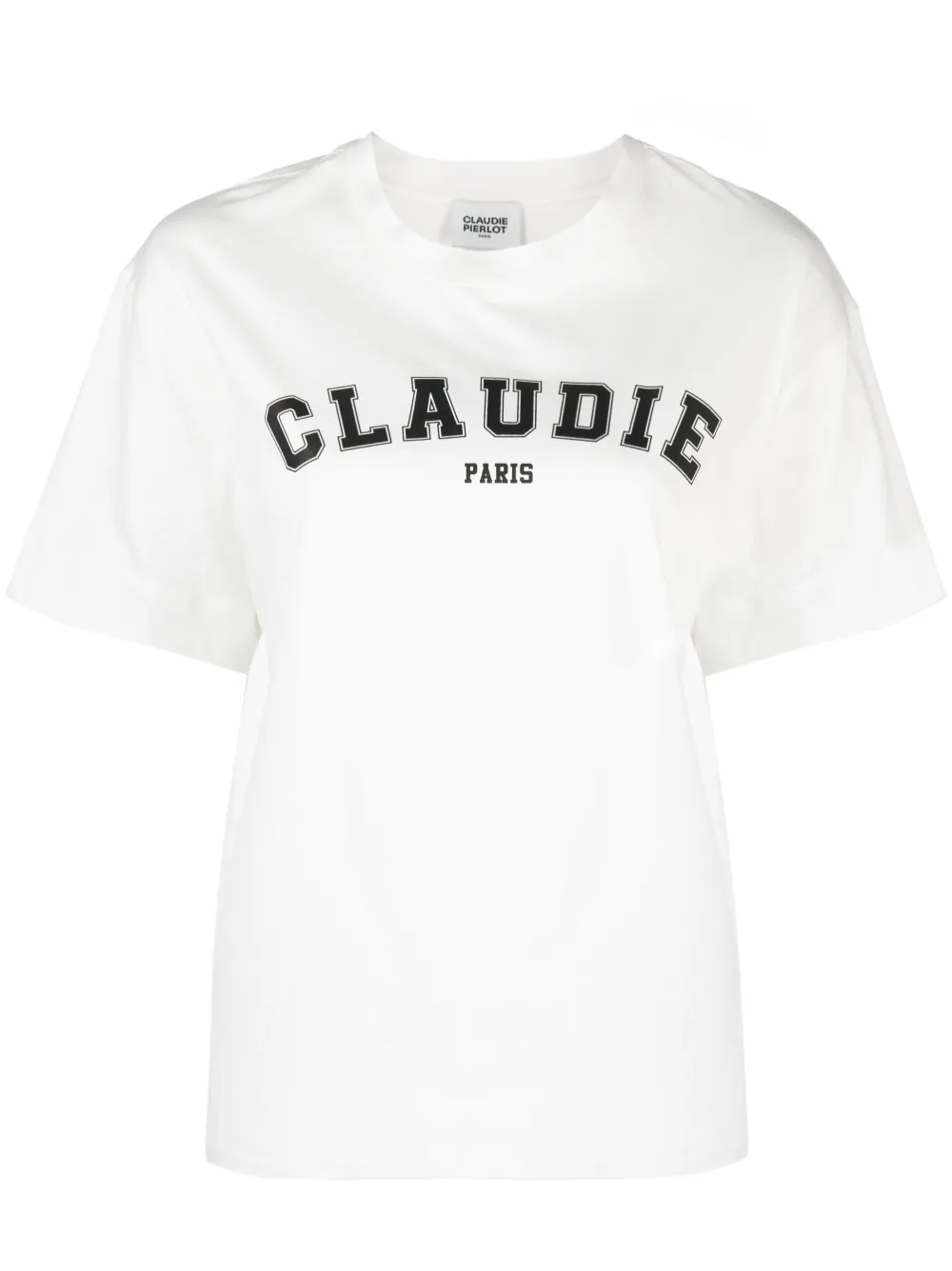 Cotone, lavorazione in jersey, stampa con logo sul davanti, girocollo, maniche con spalle scese, maniche corte e orlo dritto.