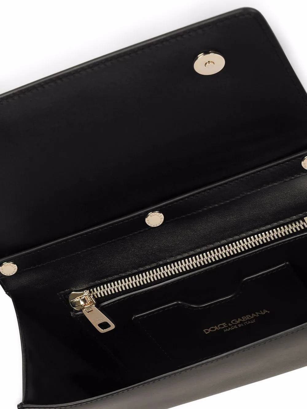 Placca con logo, battente nella parte superiore con chiusura magnetica, tracolla regolabile, scomparto unico, tasca interna con zip e fessura portacarta interna. Materiale: pelle. Colore: nero.