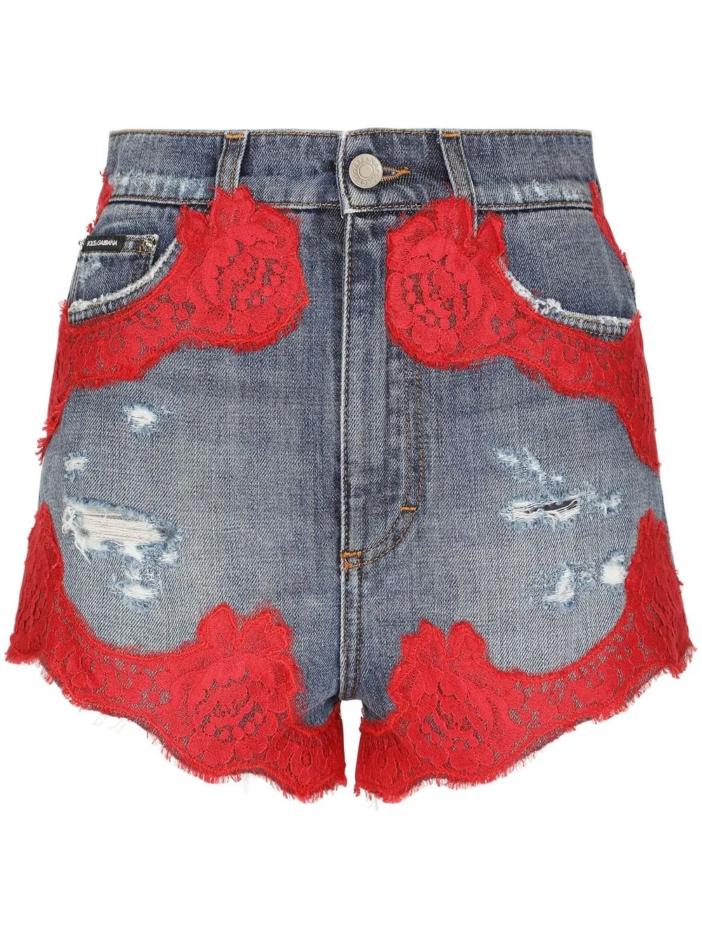 Shorts denim con pizzo a fiori