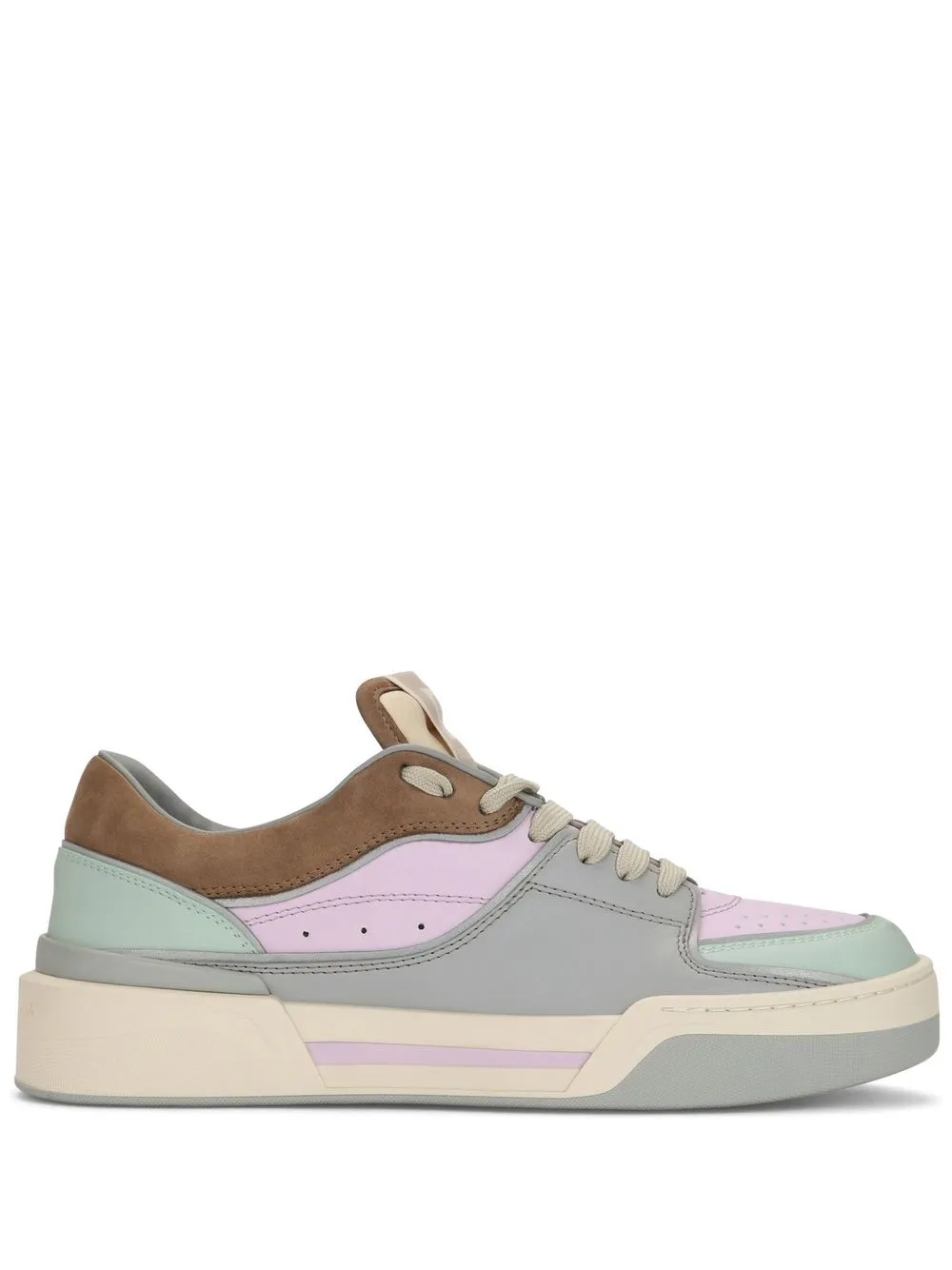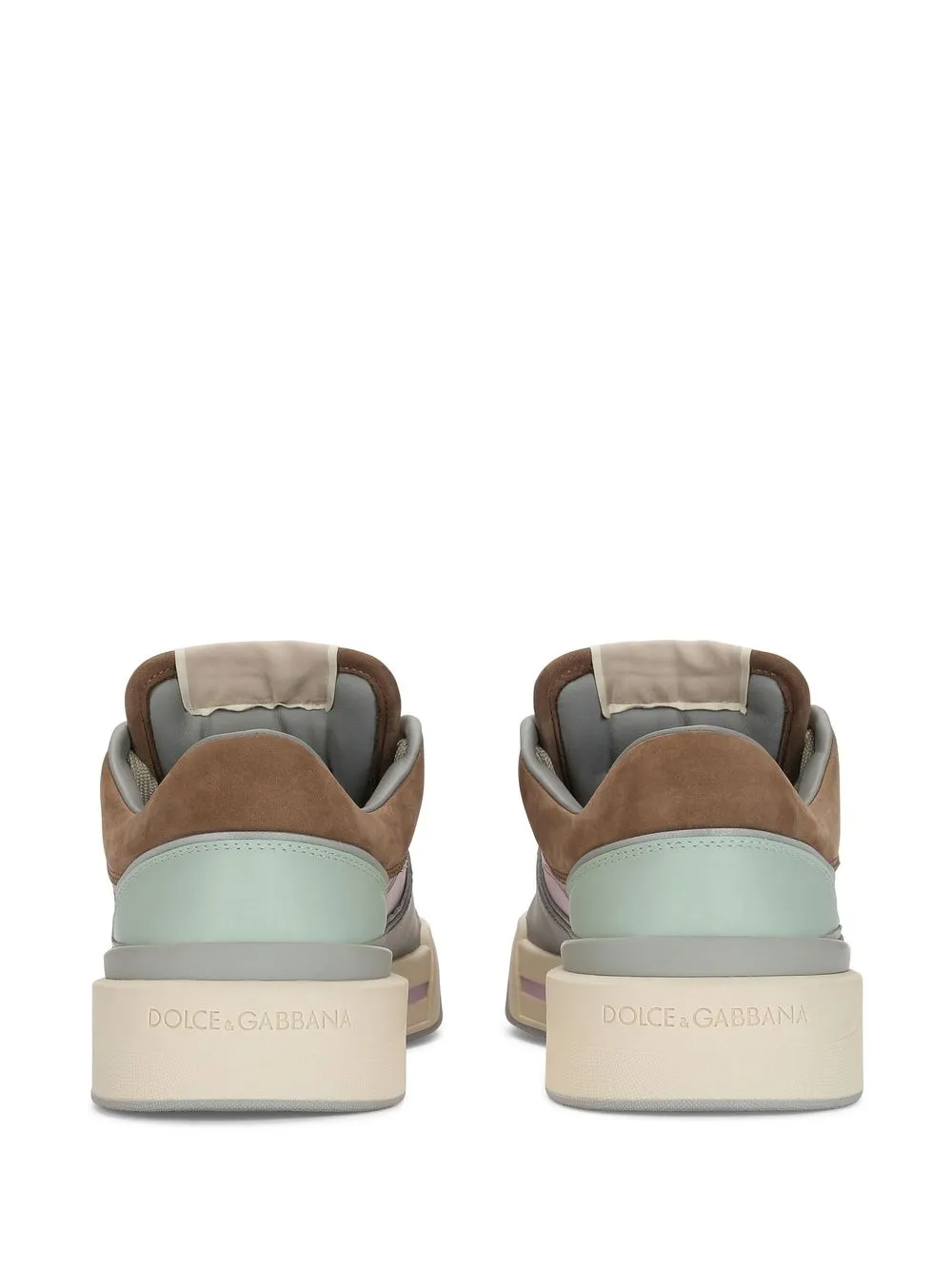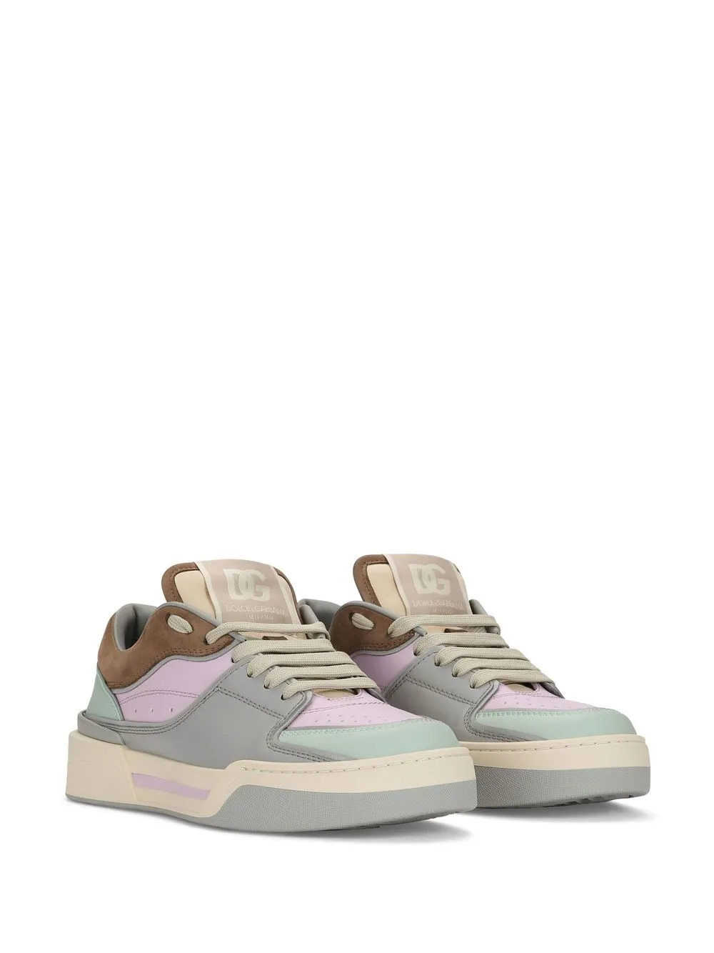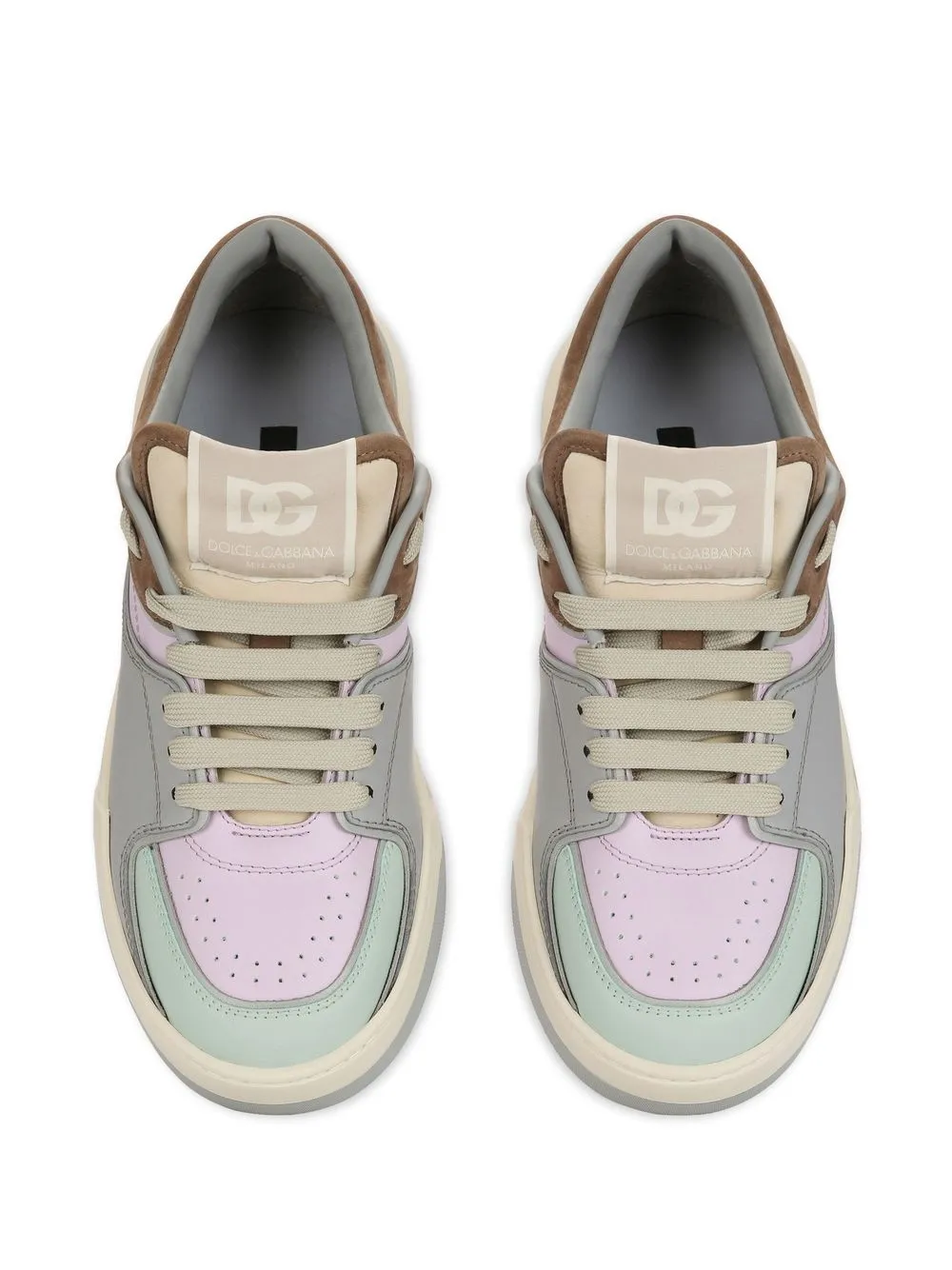 Multicolore, design a inserti, applicazione con logo sulla linguetta, logo sul retro inciso, punta tonda, chiusura frontale con lacci e suola piatta in gomma.
