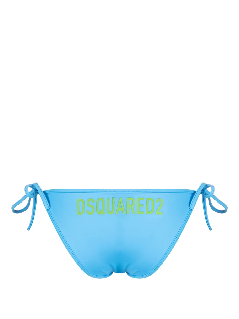 Technicolor logo-print bikini bottoms from DSQUARED2 featuring cyan blue, parakeet green, stretch-design, logo print to the rear, side tie fastening and full coverage. Be mindful to try on swimwear over your own garments..