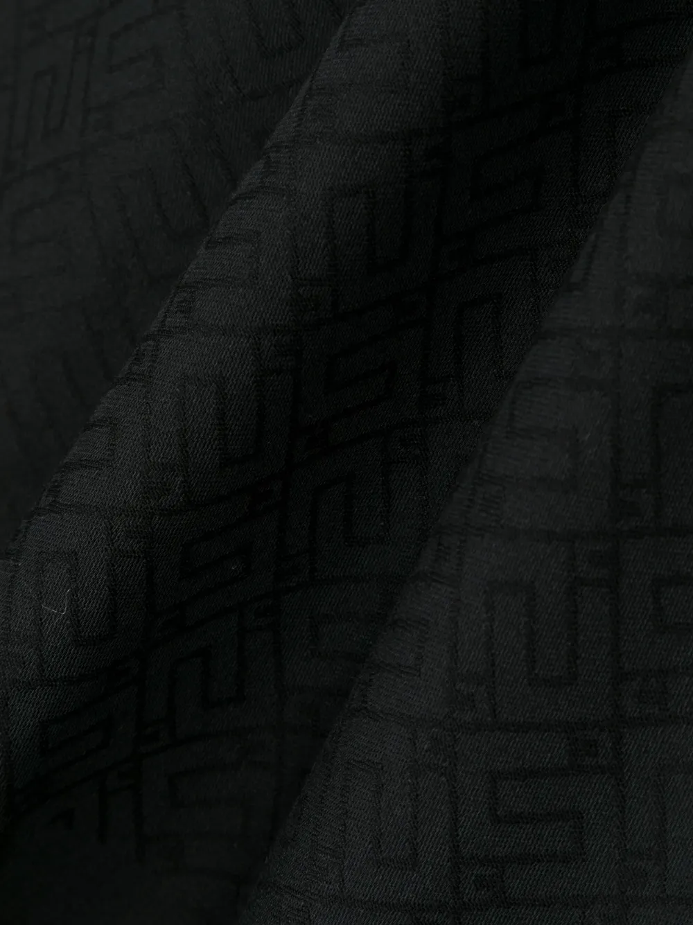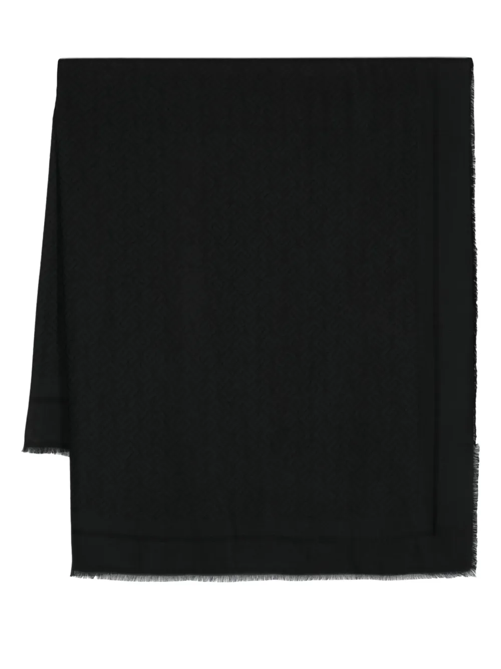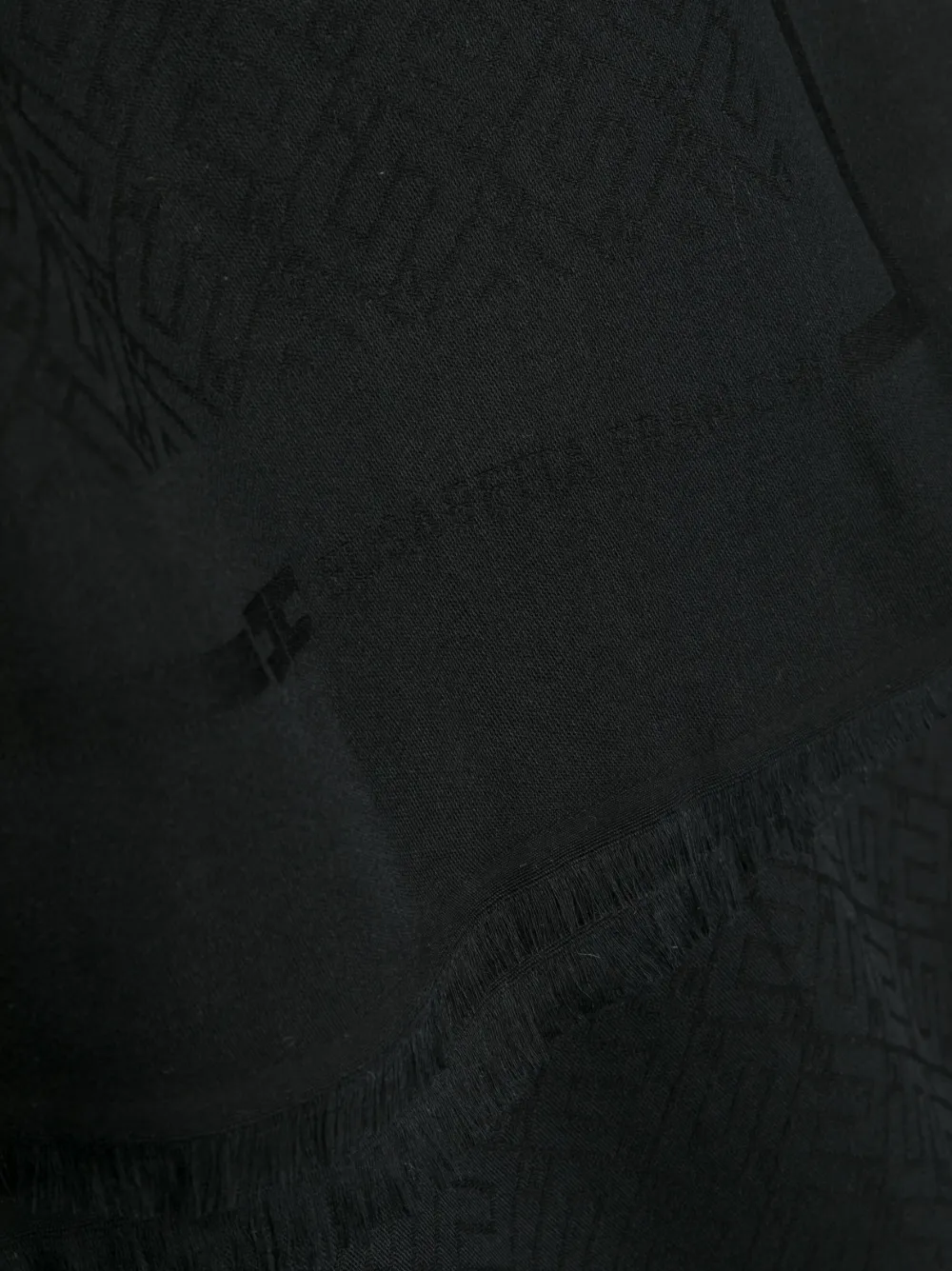 logo-trim monogram-jacquard scarf from ELISABETTA FRANCHI featuring black, monogram jacquard, logo trim, fringed edge and wraparound style.