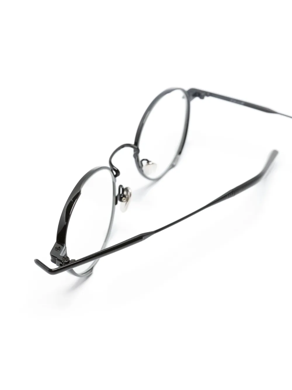 Nero, titanio, finitura lucida, montatura tonda, lenti chiare, naselli, aste dritte, finitura opaca e aste con punta curva. Gli occhiali FARFETCH non sono venduti con lenti graduate. Questi occhiali sono forniti con una custodia protettiva.