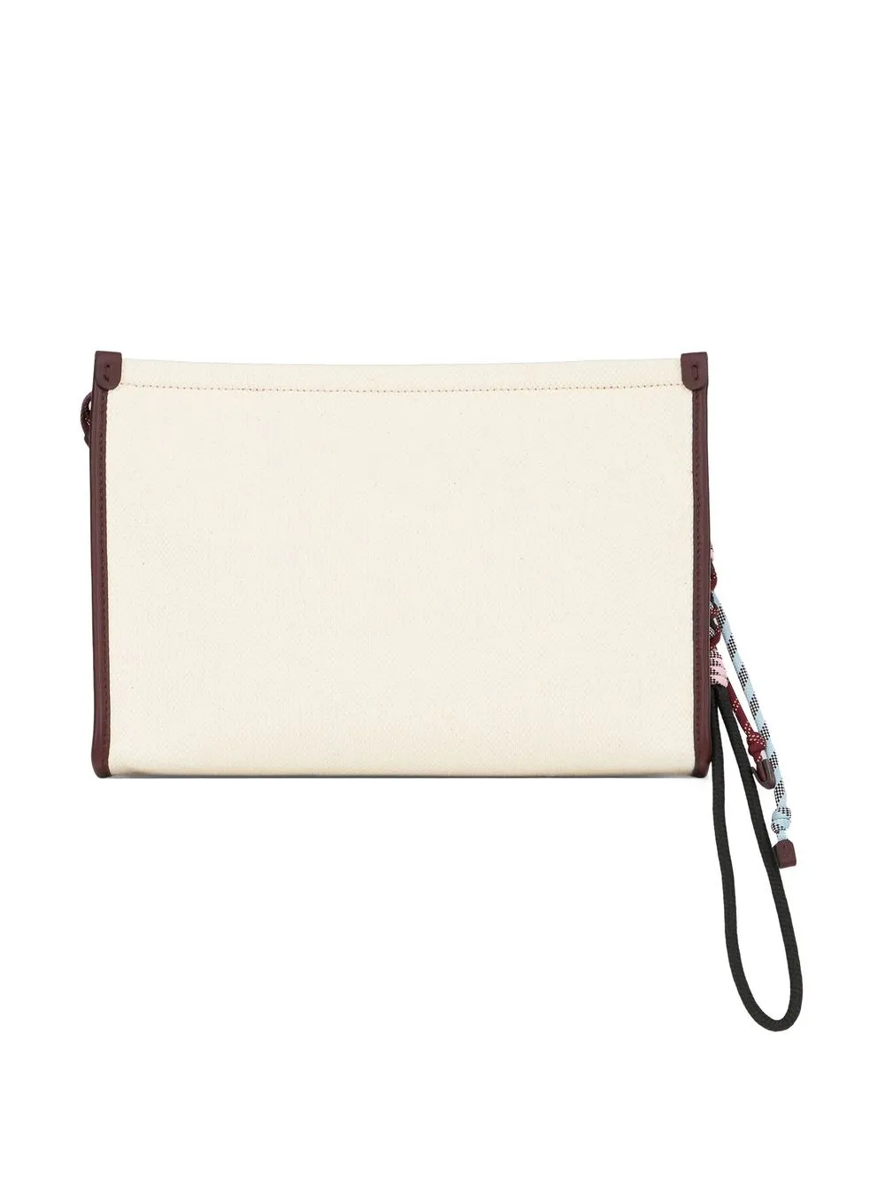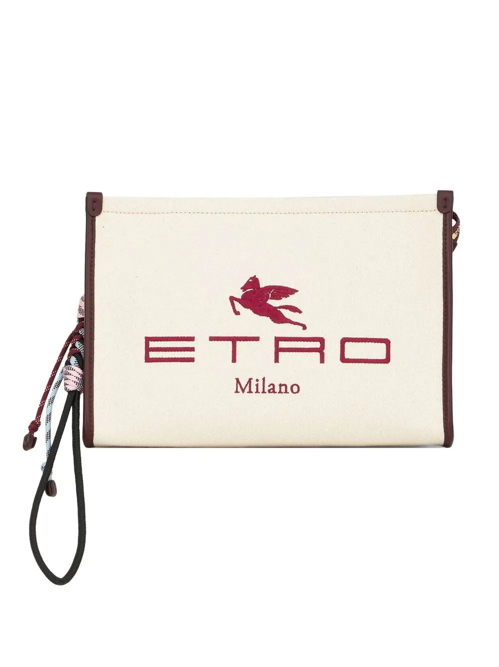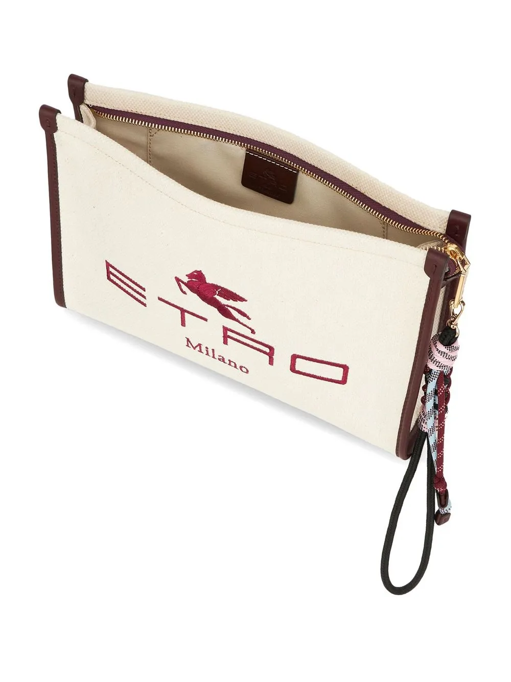 Ricamo con logo frontale, cinturino da polso e chiusura superiore con zip.