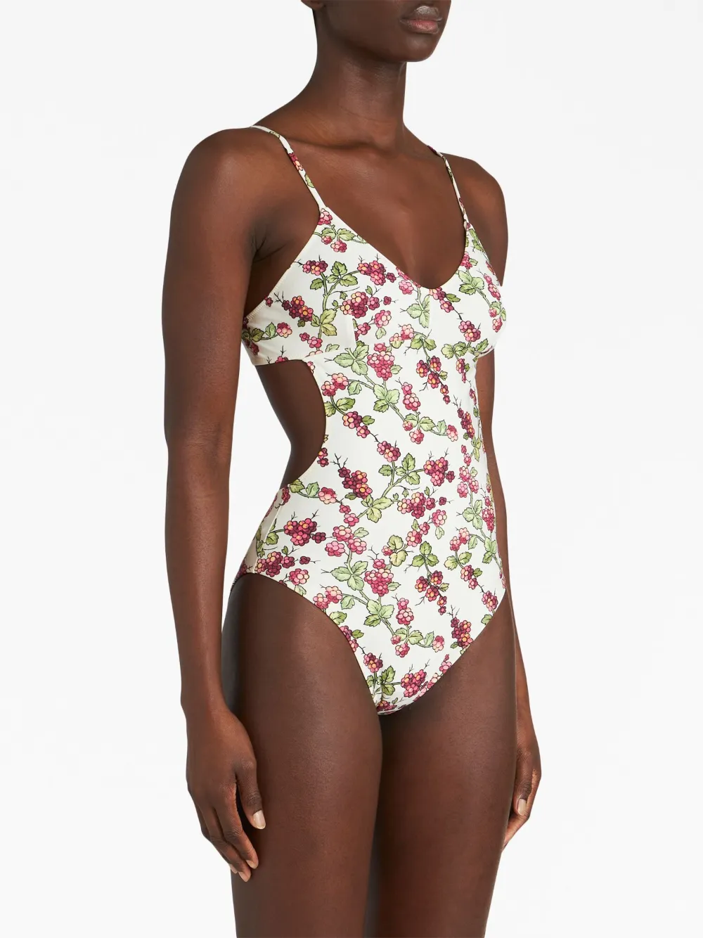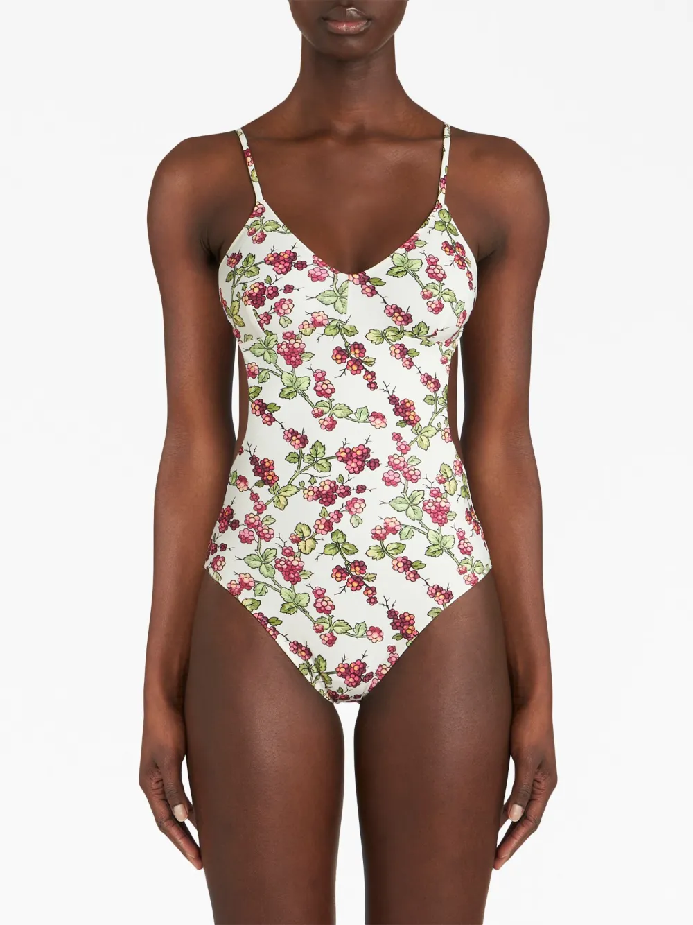 Bianco/multicolore, design elasticizzato, stampa con frutta, spalline fini regolabili e chiusura posteriore con nodo. I costumi da bagno devono essere provati indossando il proprio indumento intimo.