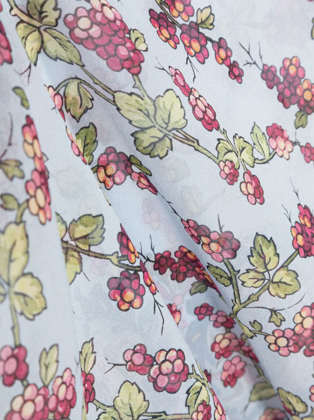 Blu chiaro, multicolore, seta, stampa botanica, design regolabile e bordo con frange.
