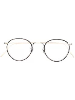 Occhiali tondi di colore nero e dorato in titanio e acetato di EYEVAN7285. Questo articolo include una custodia protettiva.