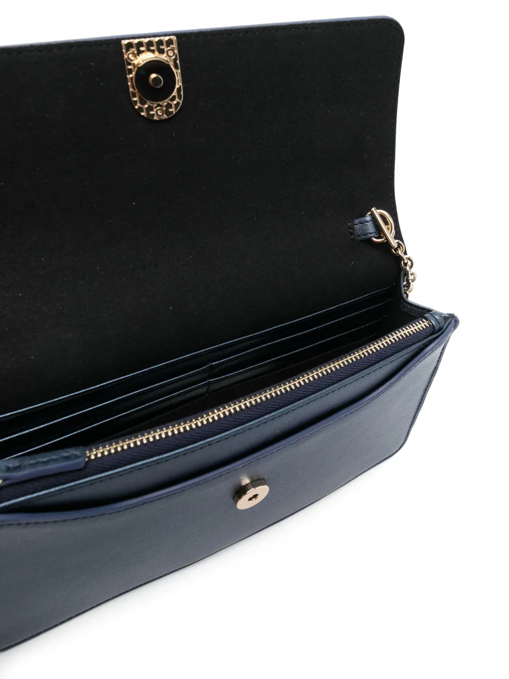 Pattina nella parte superiore, chiusura magnetica nascosta, fessure portacarte interne, tasca interna con zip e tracolla a catena.