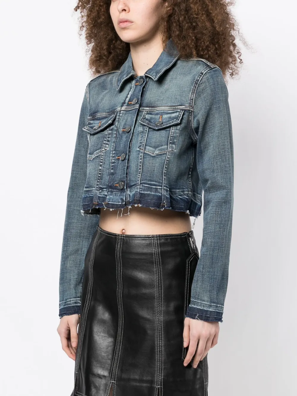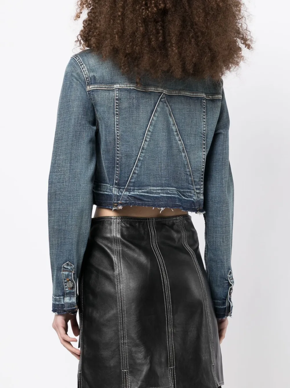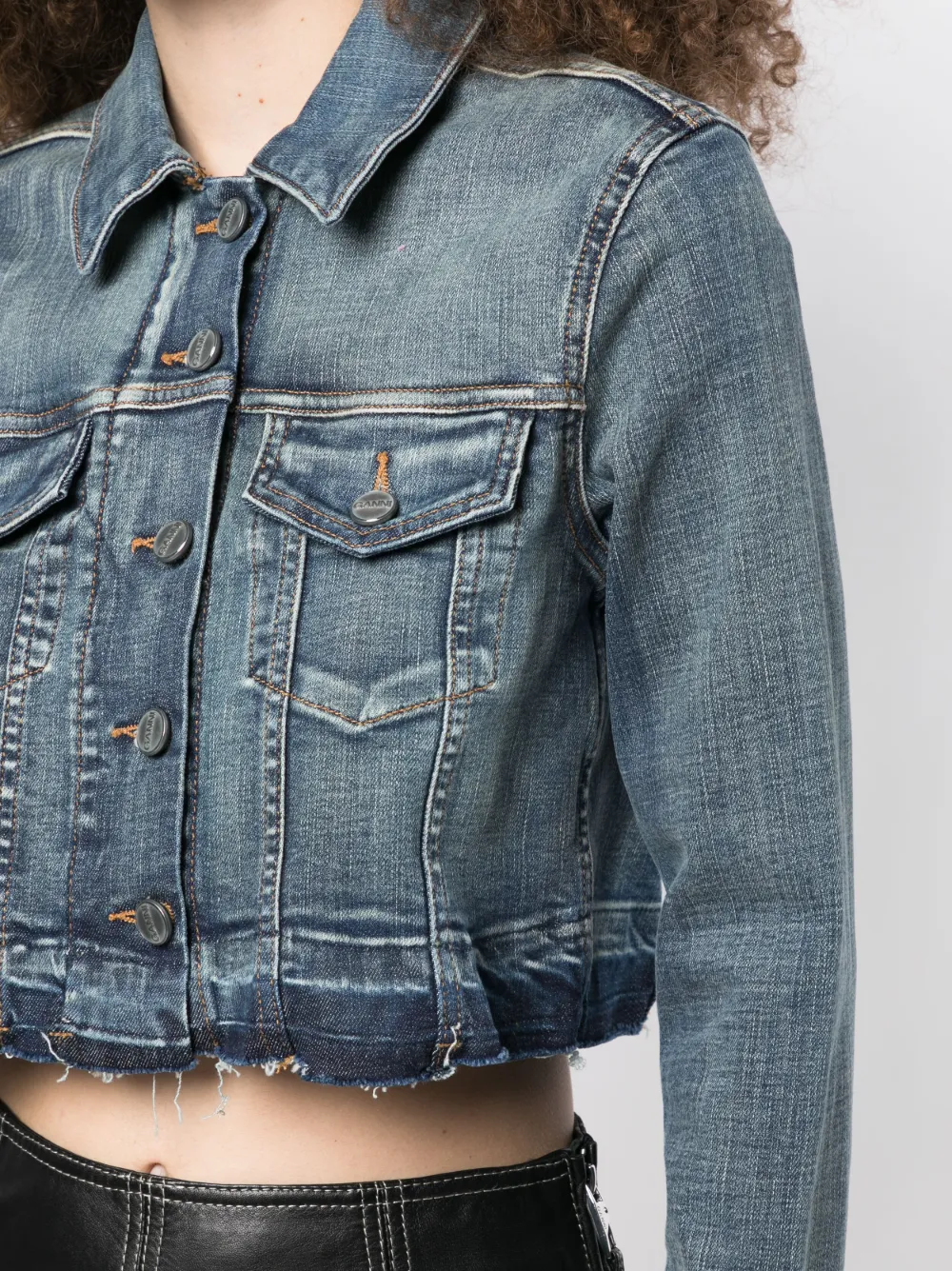 Indaco, cotone biologico elasticizzato, applicazione posteriore con logo, colletto a punta, chiusura frontale con bottoni, maniche lunghe, orli con bottone, due tasche con patta sul petto, orlo sfrangiato e design crop. Questo articolo è realizzato almeno per il 50% con materiali biologici.