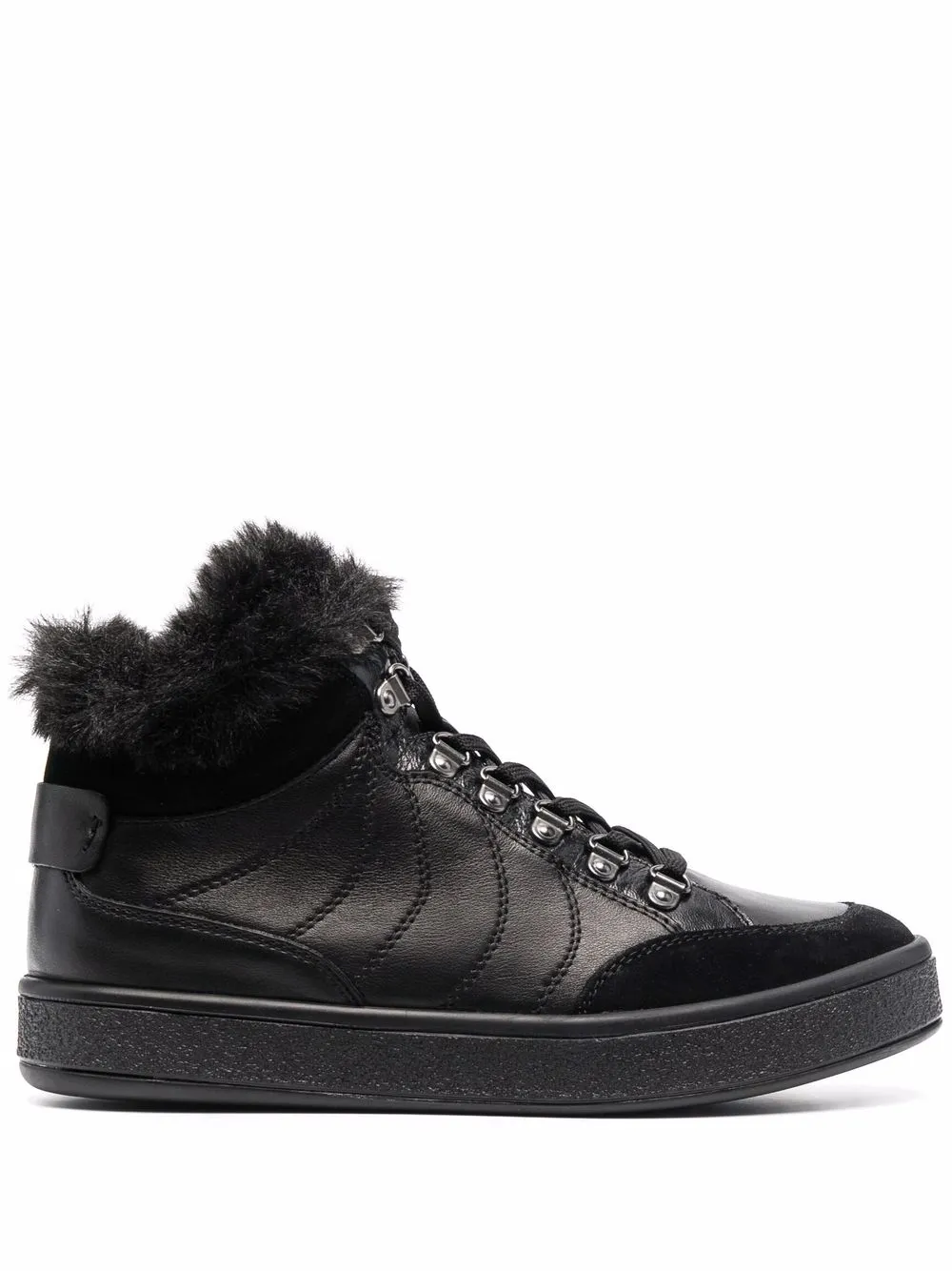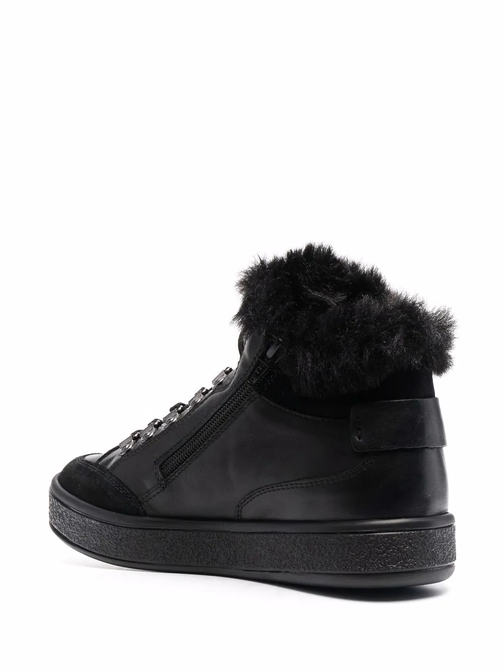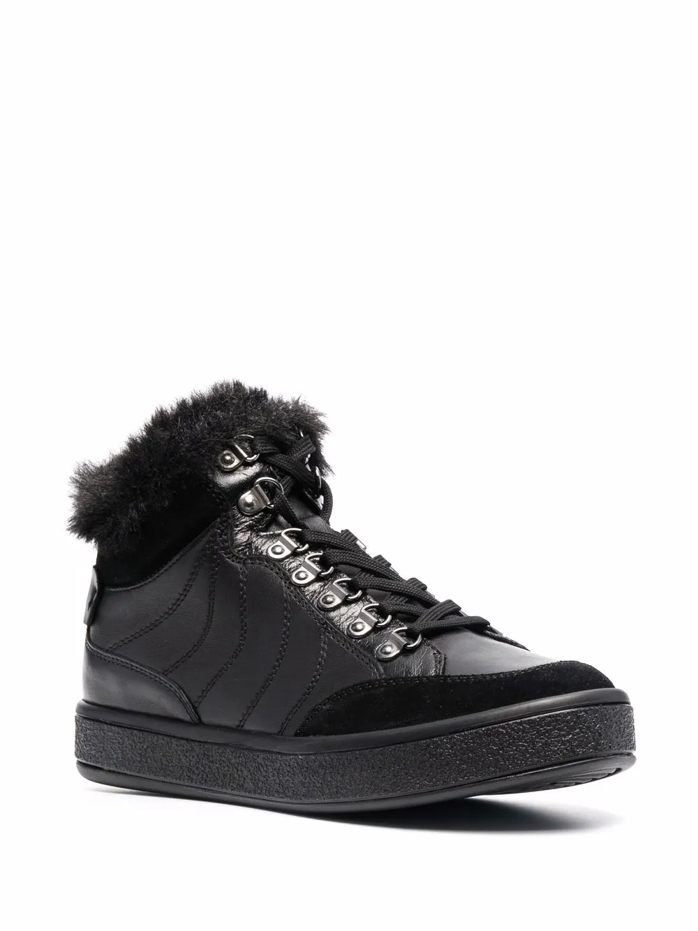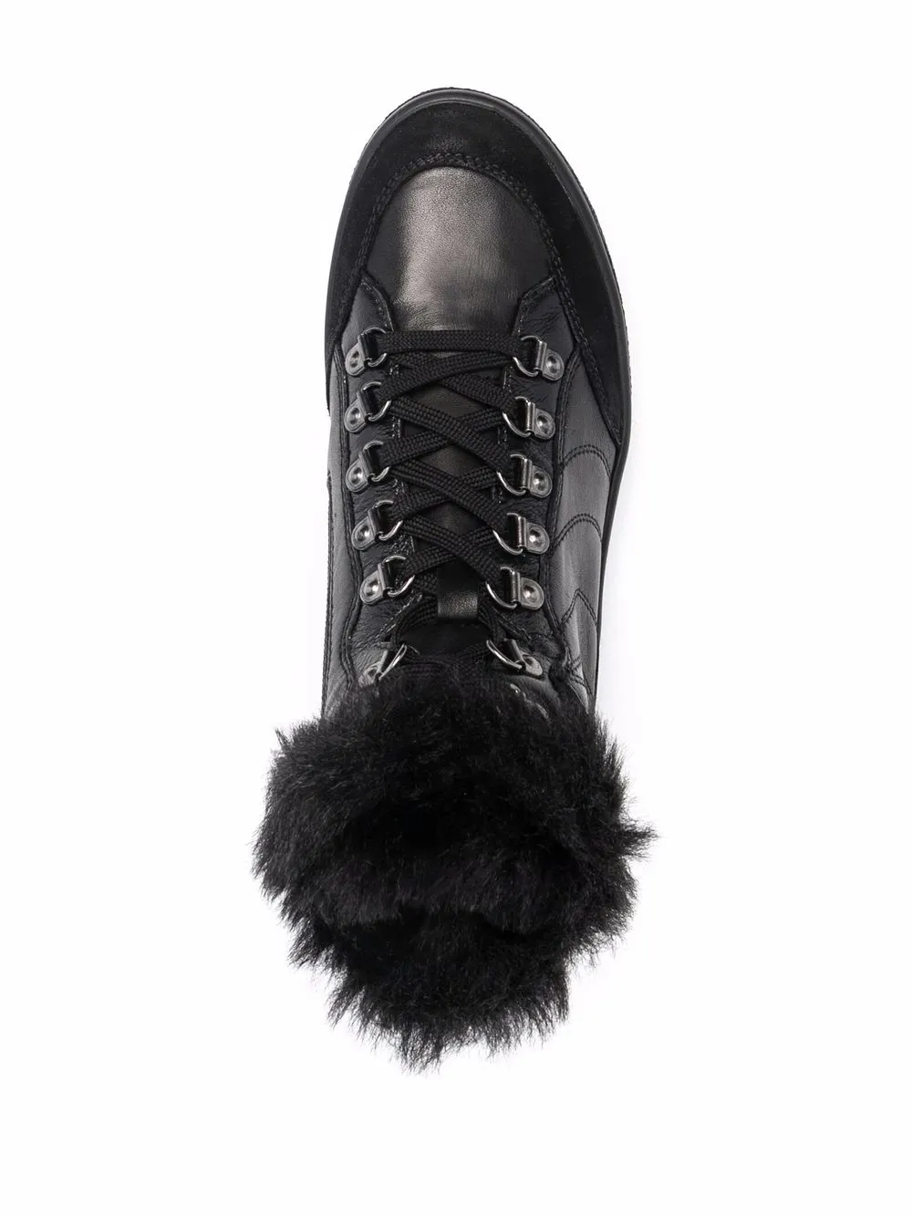 Fodera in pelliccia, rifinitura in pelliccia, punta tonda, chiusura frontale con lacci e suola piatta in gomma. Materiale: pelle. Colore: nero.