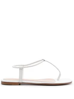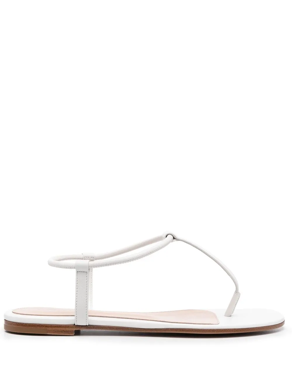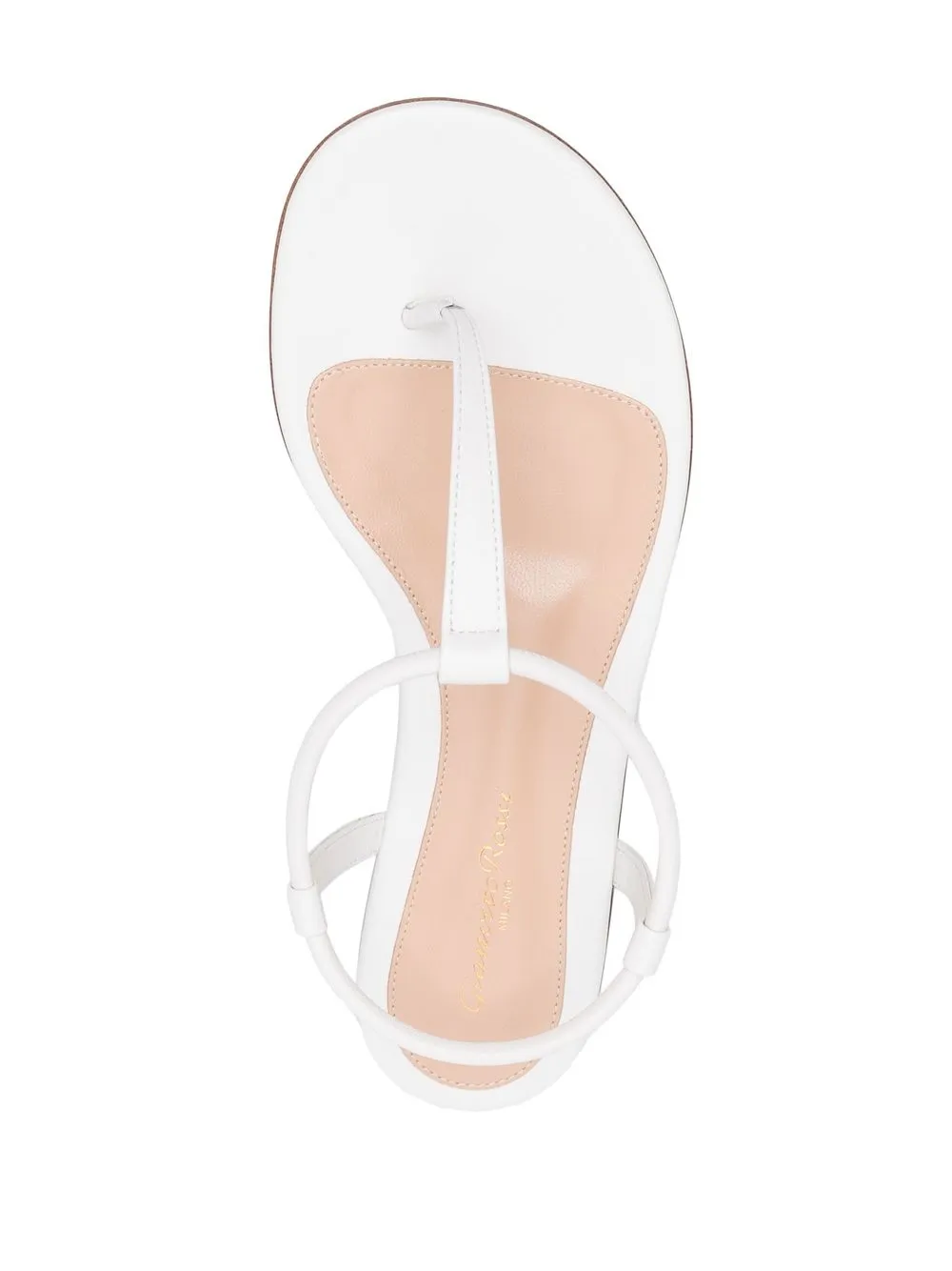 Punta aperta, cinturino a T, senza chiusura, soletta in pelle con logo e suola piatta in pelle. Materiale: pelle. Colore: bianco.