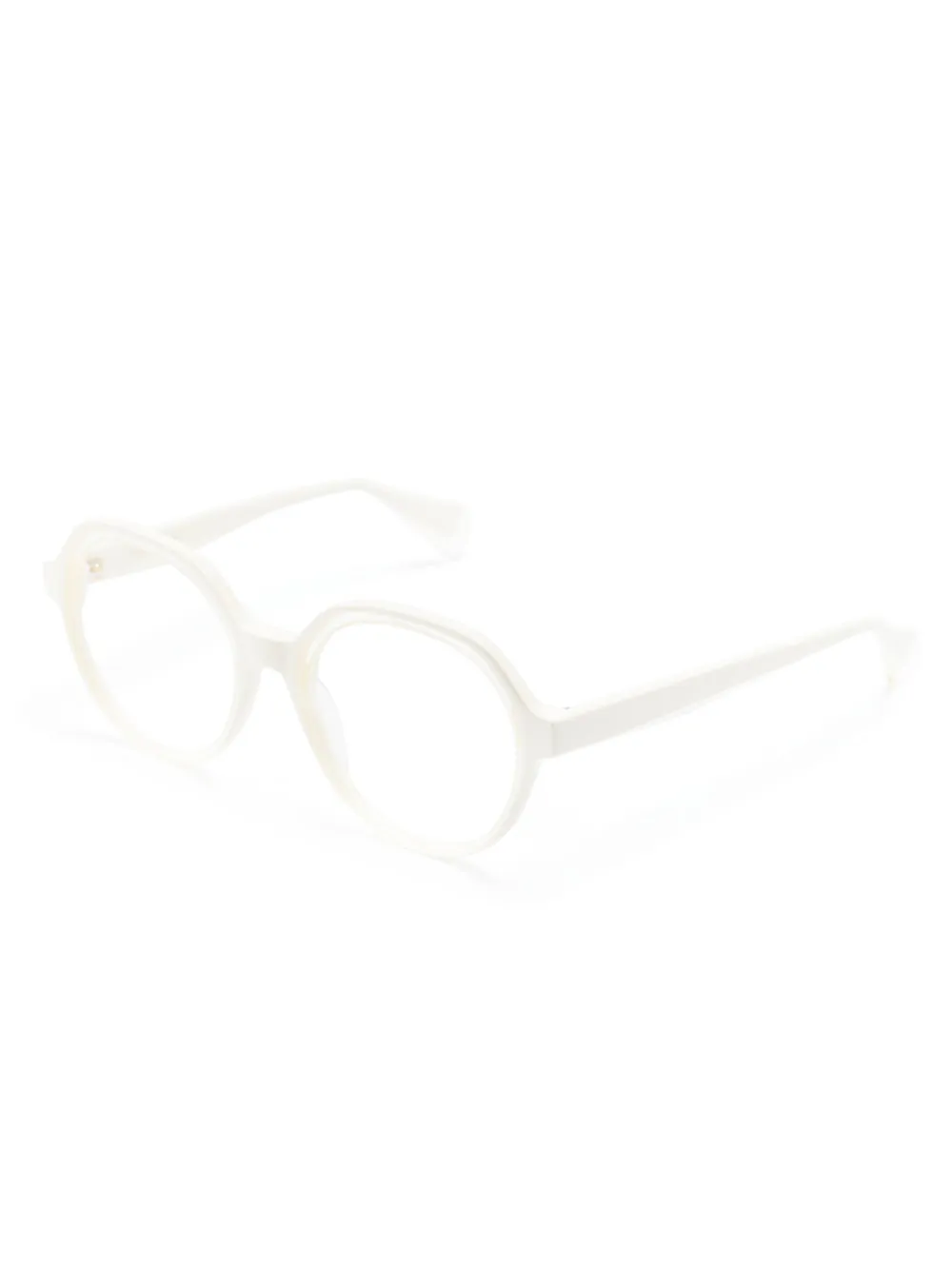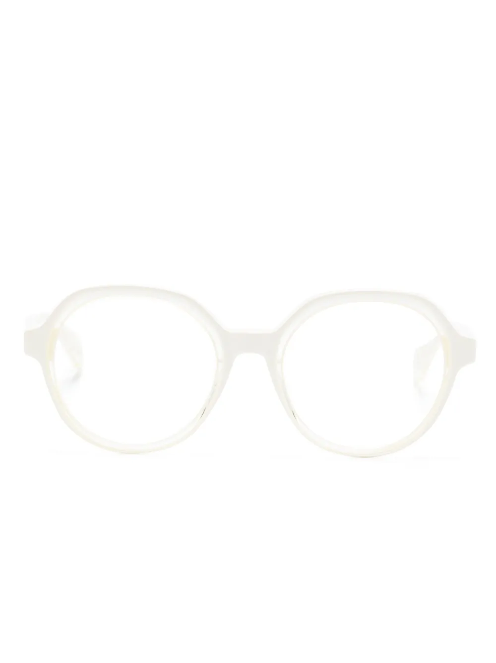 Bianco crema, acetato, finitura laminata, montatura tonda, stampa interna con logo, aste dritte e aste con punta curva. Gli occhiali FARFETCH non sono venduti con lenti graduate. Questi occhiali sono forniti con una custodia protettiva.