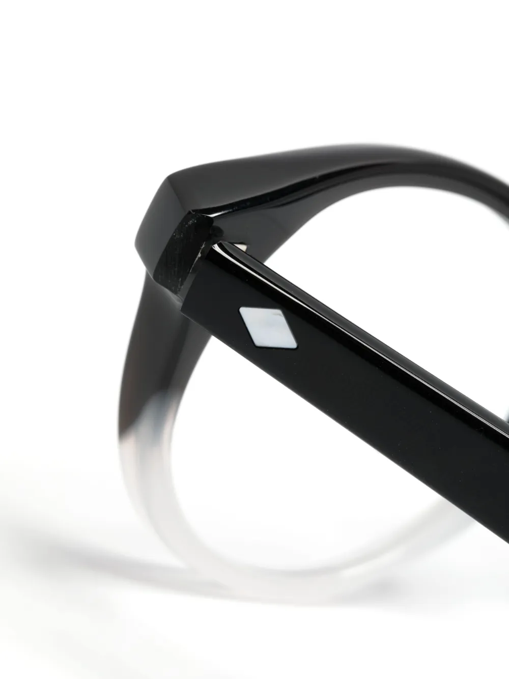 Nero/bianco, acetato, effetto sfumato, design bicolore, dettagli color argento, montatura tonda, lenti chiare, naselli, aste dritte e aste con punta curva. Questi occhiali sono forniti con una custodia protettiva. Gli occhiali FARFETCH non sono venduti con lenti graduate.