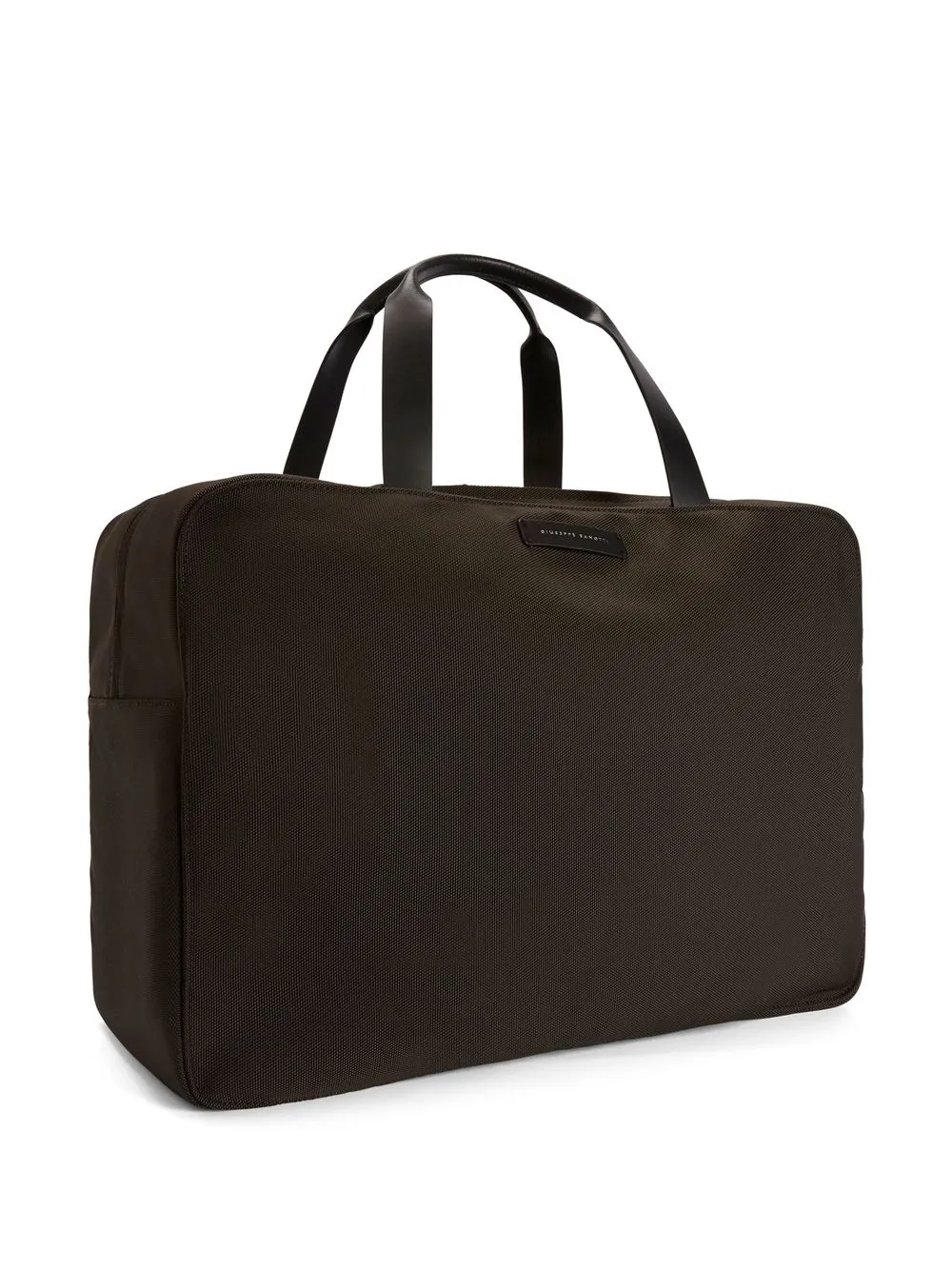 Castano ramato, applicazione frontale con logo, due manici, chiusura superiore con zip e scomparto unico.