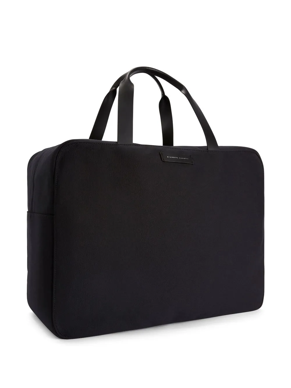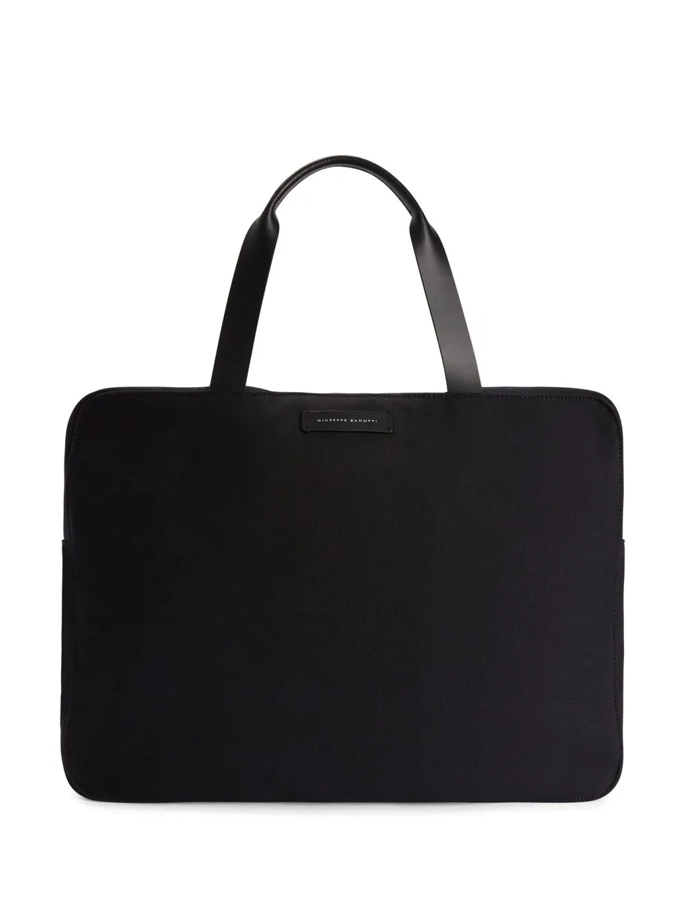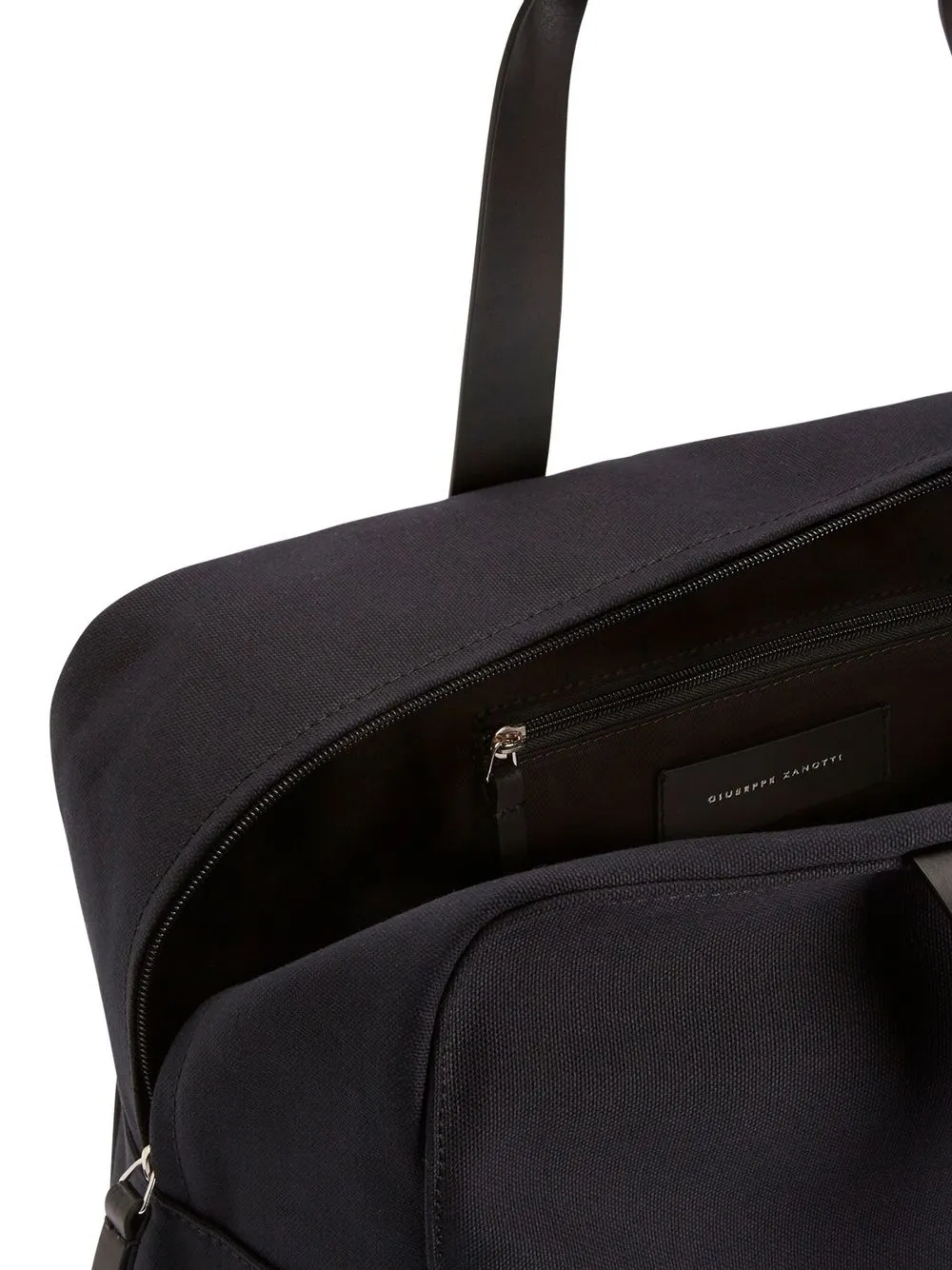 Nero, chiusura superiore con zip, due manici tondi e scomparto unico.
