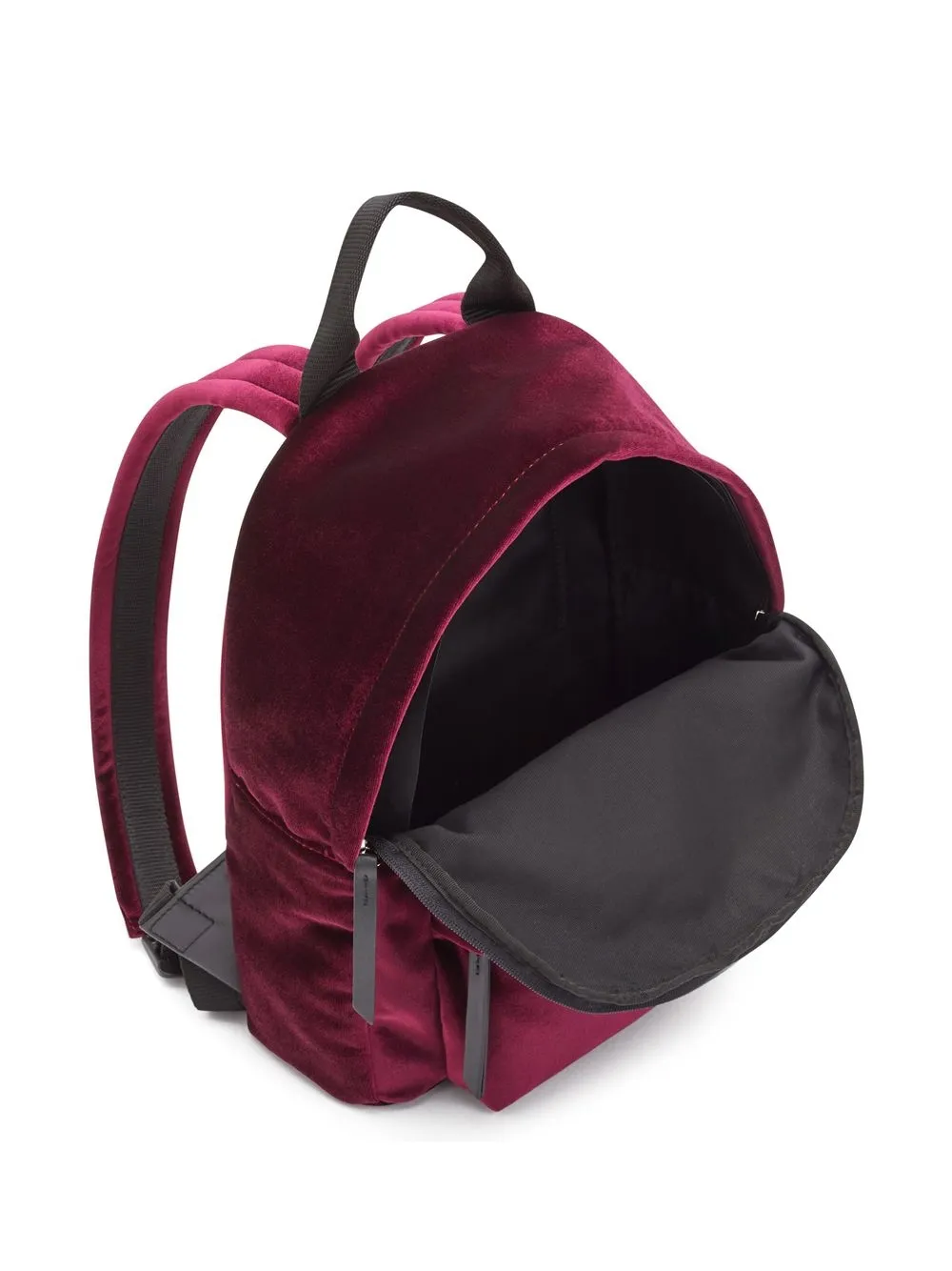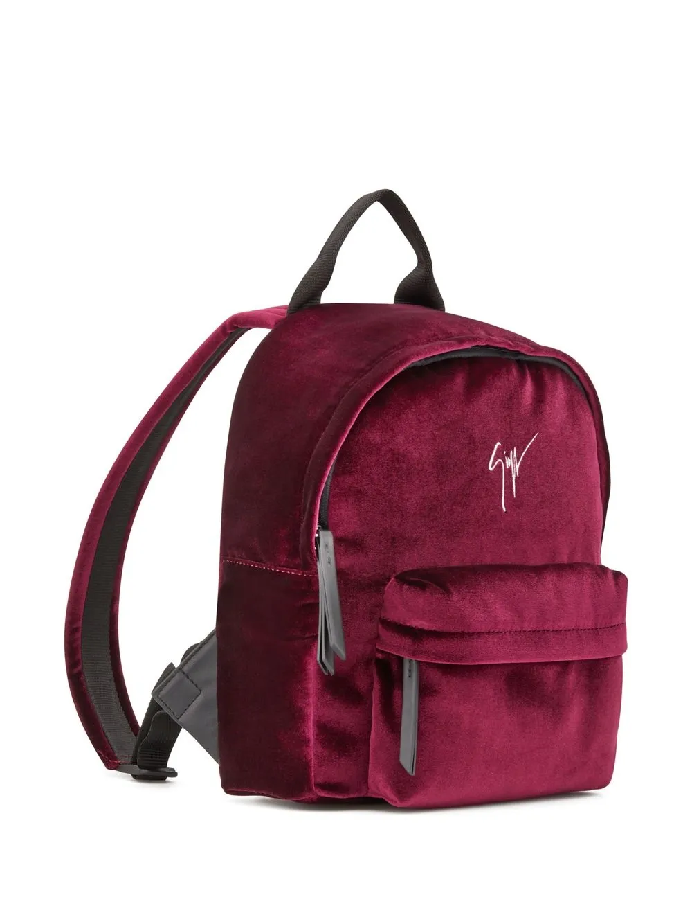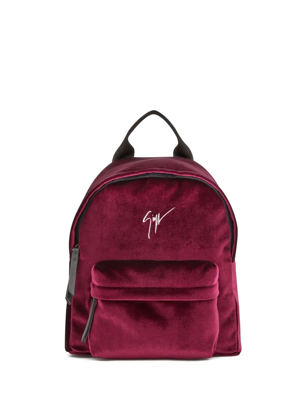 Ricamo con logo frontale, manico singolo, due tracolle regolabili, chiusura superiore con zip, scomparto unico e scomparto frontale con zip.
