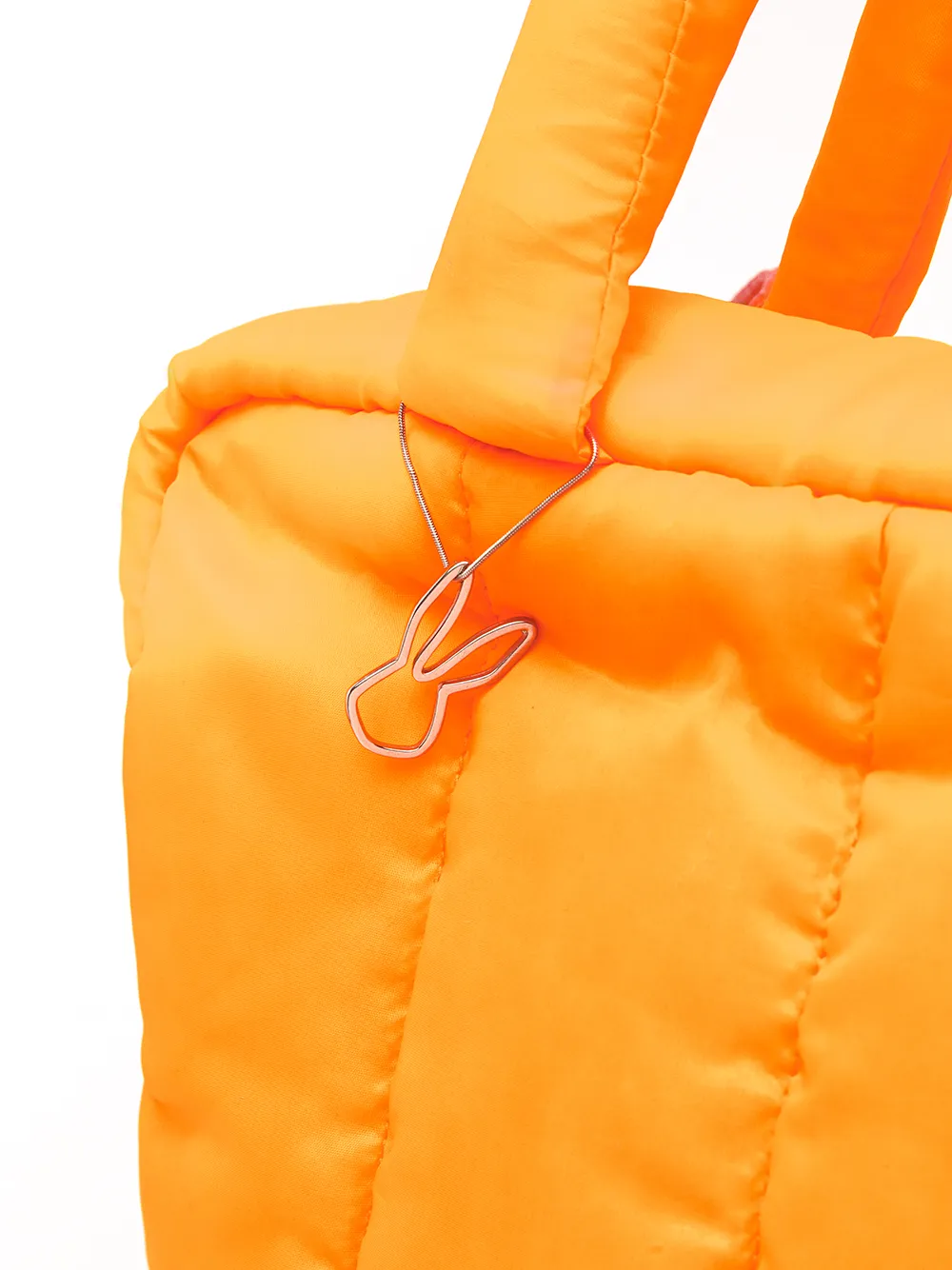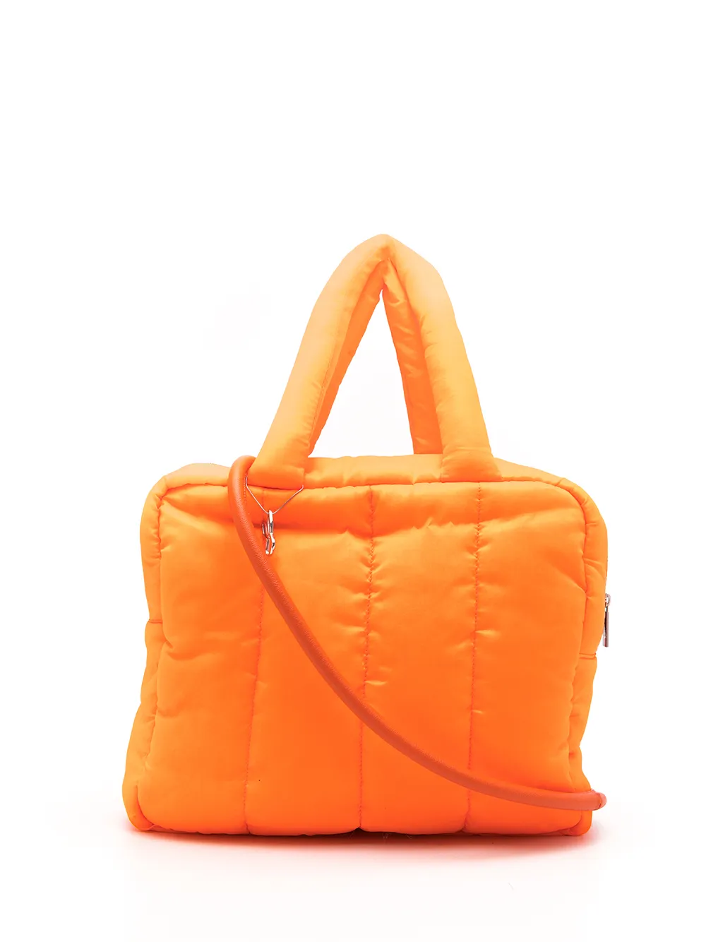 Due manici, design con fascia singola, chiusura superiore con zip, design imbottito e tasca interna. Colore: arancione.