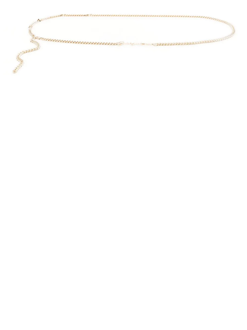 Color oro, ottone, ciondolo con logo, dettaglio a catena, chiusura con fermaglio e choker con catena.