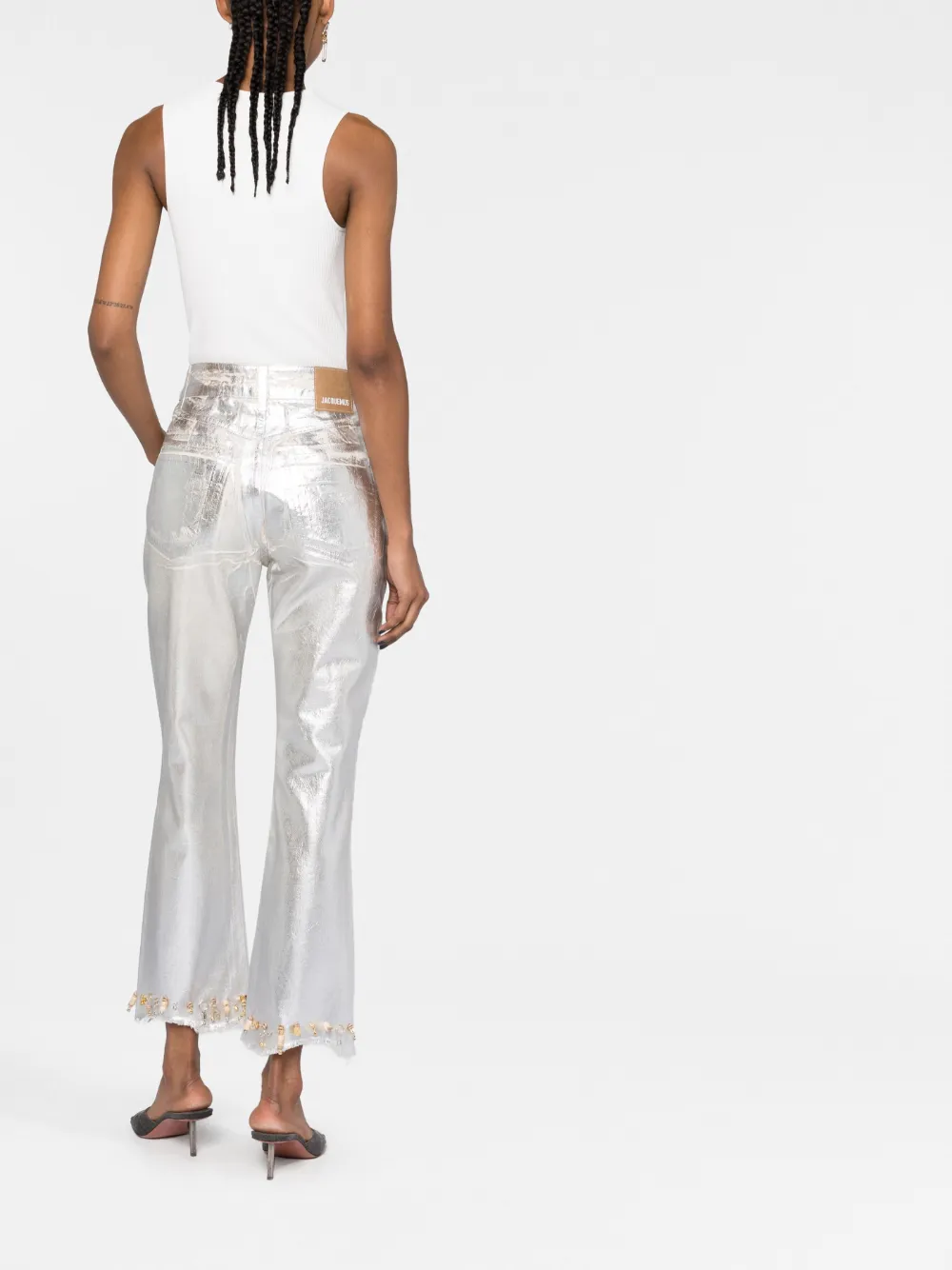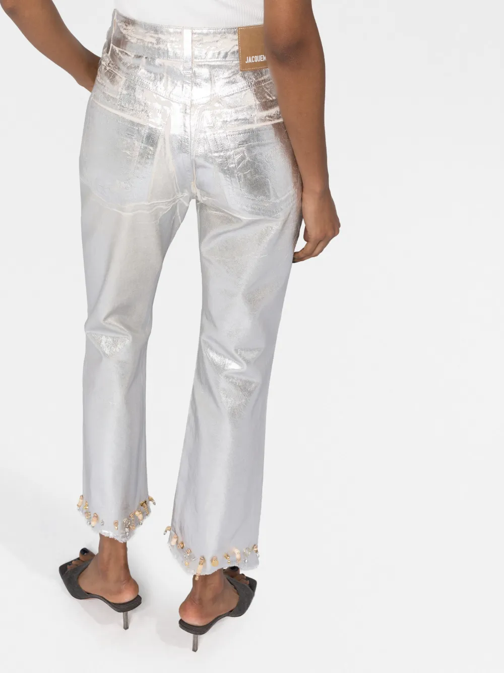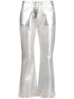 Cotone biologico, denim, finitura metallizzata, vita media, passanti, chiusura con bottoni, taglio straight, orlo sfrangiato, dettaglio con perline e applicazione posteriore con logo. Questo articolo è realizzato almeno per il 50% con materiali biologici. Per ulteriori informazioni sui requisiti che rendono un prodotto CONSCIOUS, consultare la pagina Criteri Conscious.